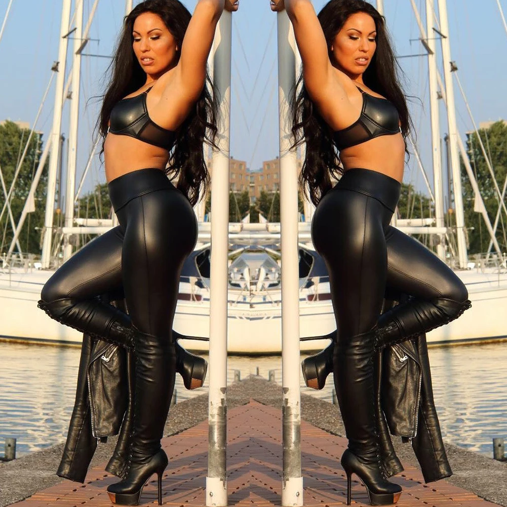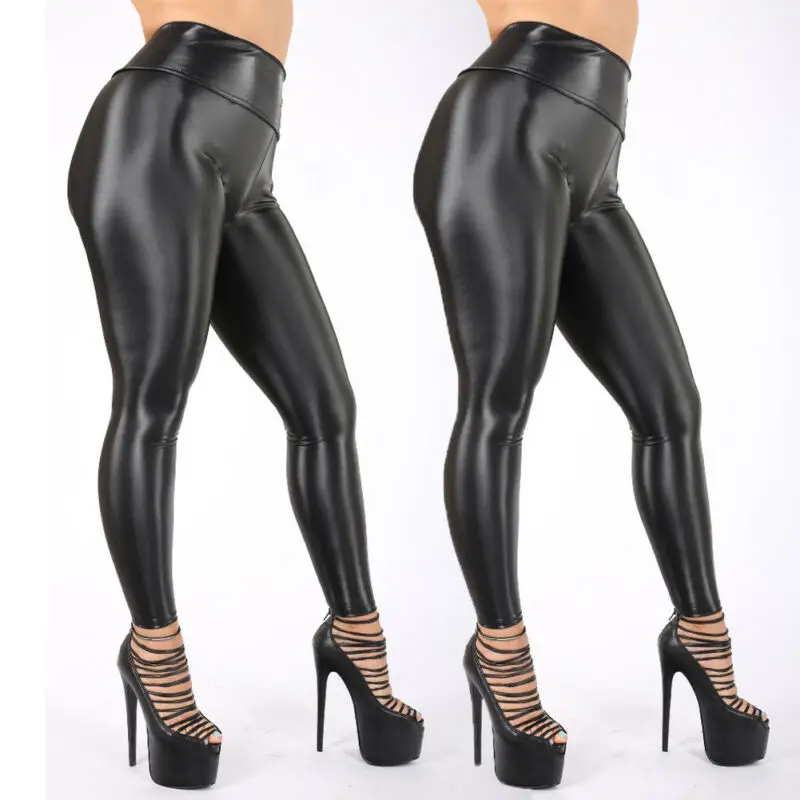 Женские леггинсы из ПУ кожи, с высокой эластичной талией
