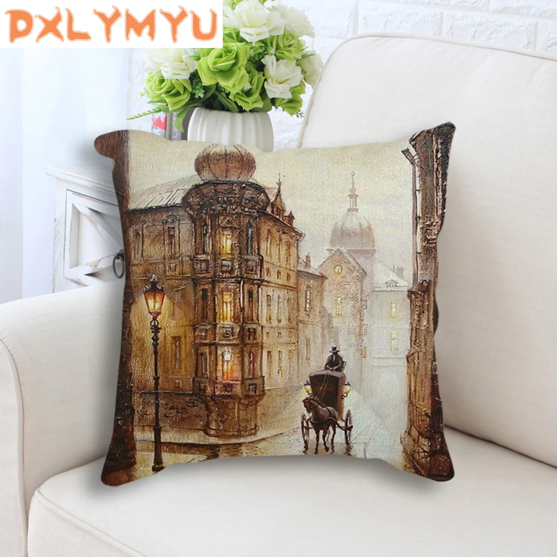 Декоративные подушки для диванов, уличные, автобусные, городские пейзажи, диванные подушки для диванов, постельное белье 45x45 см, подушки на спинку сиденья, наволочка