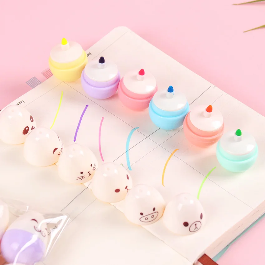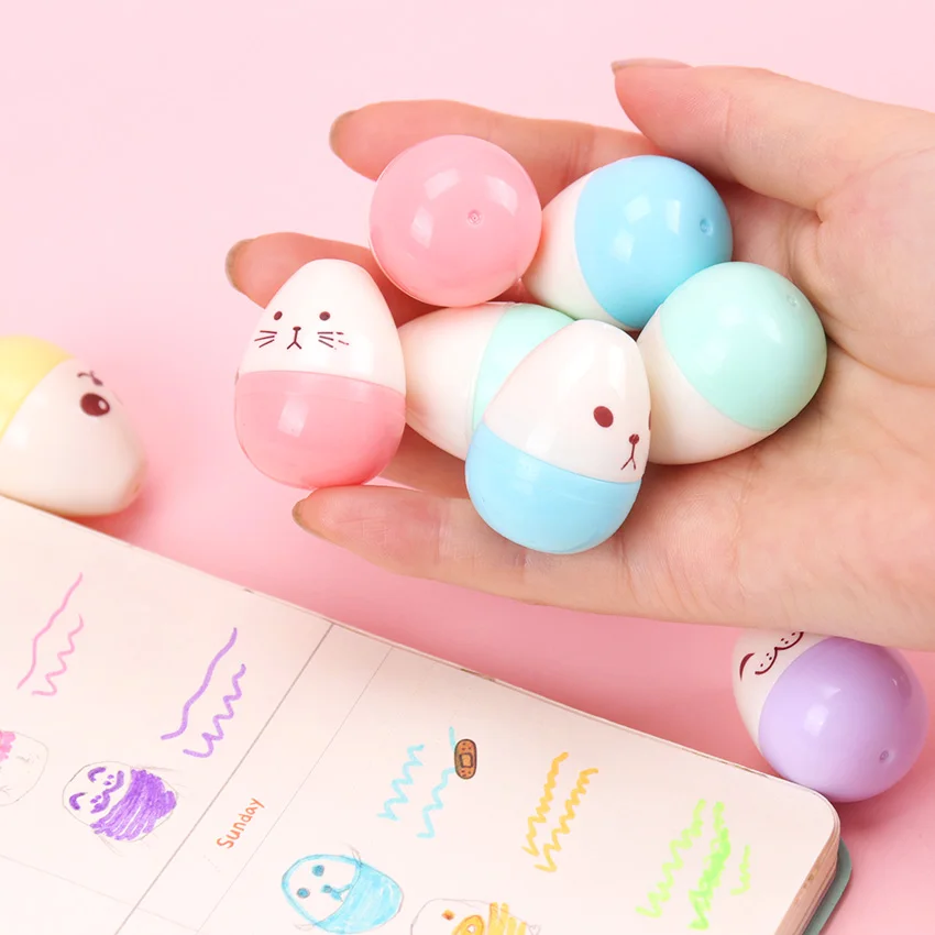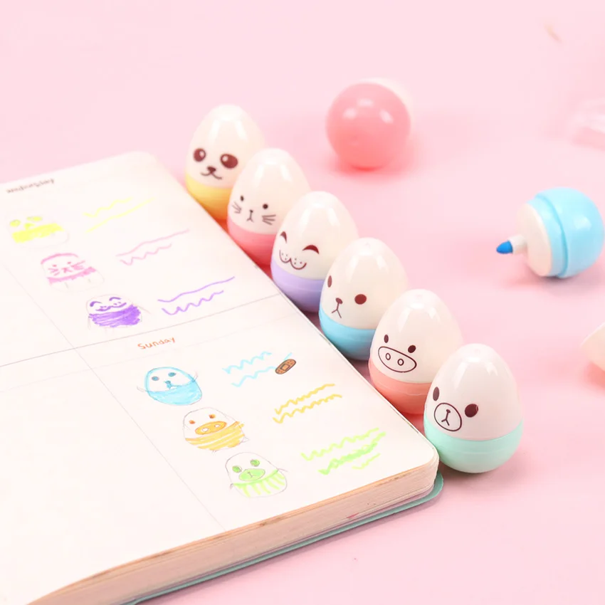 6 шт., милая флуоресцентная ручка-маркер в виде яйца, для школы, корейские Канцтовары