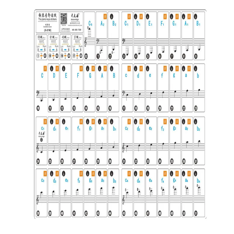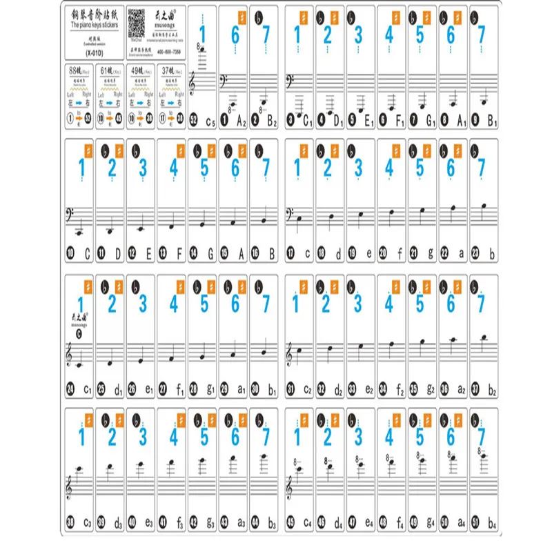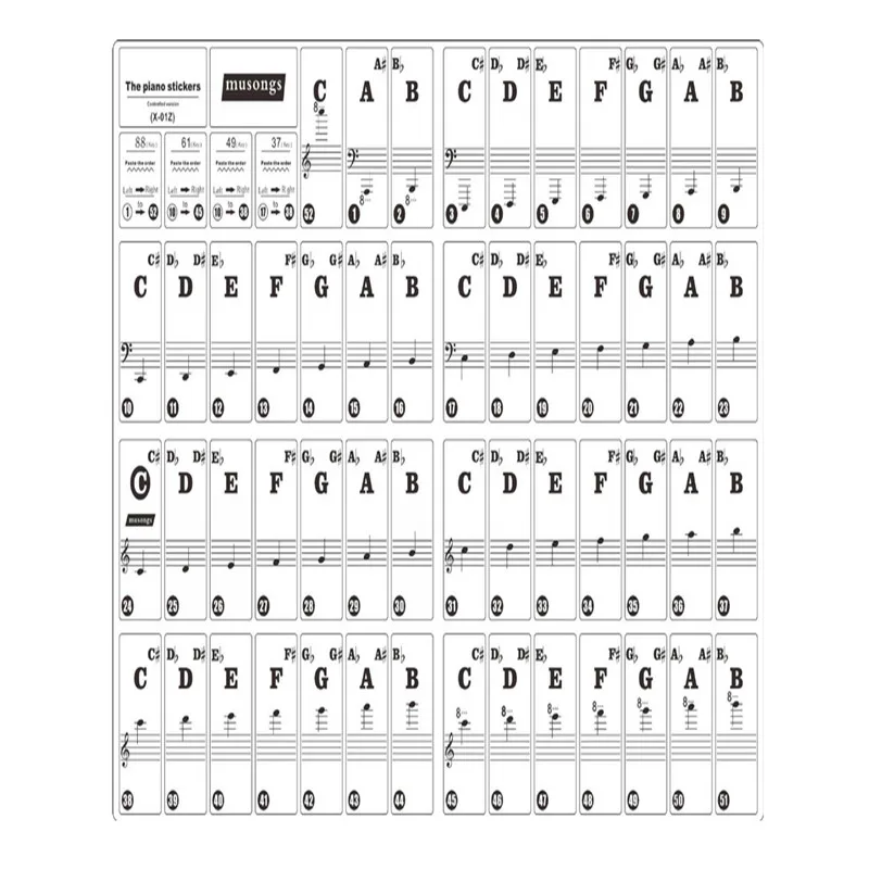 6188 клавиша фортепианная наклейка Музыка Примечание диаграмма клавиатура клей палец практика для начинающих домашний декор плакат