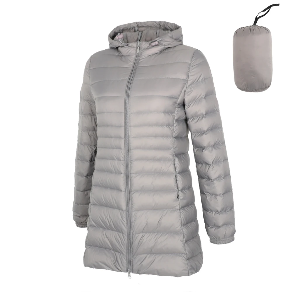 Женский длинный пуховик с капюшоном, Сверхлегкий пуховик из матовой ткани, большие размеры 5XL, 6XL, для зимы