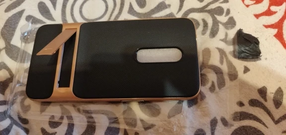 Посылка пришла за 2 недели. Чехол классный. До этого был такой же с золотистым ободом и ножкой, но краска со временем стёрлась. Надеюсь что черный пластик не крашенный. Товаром довольна.