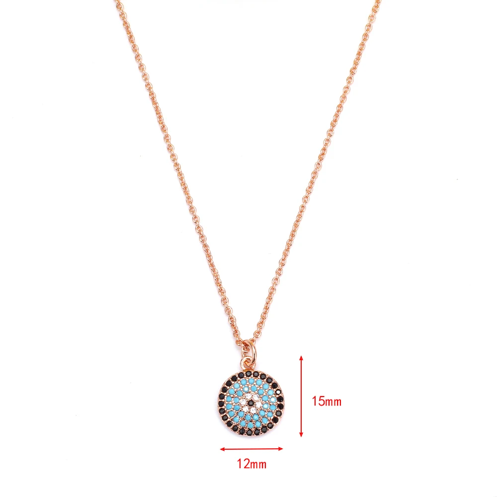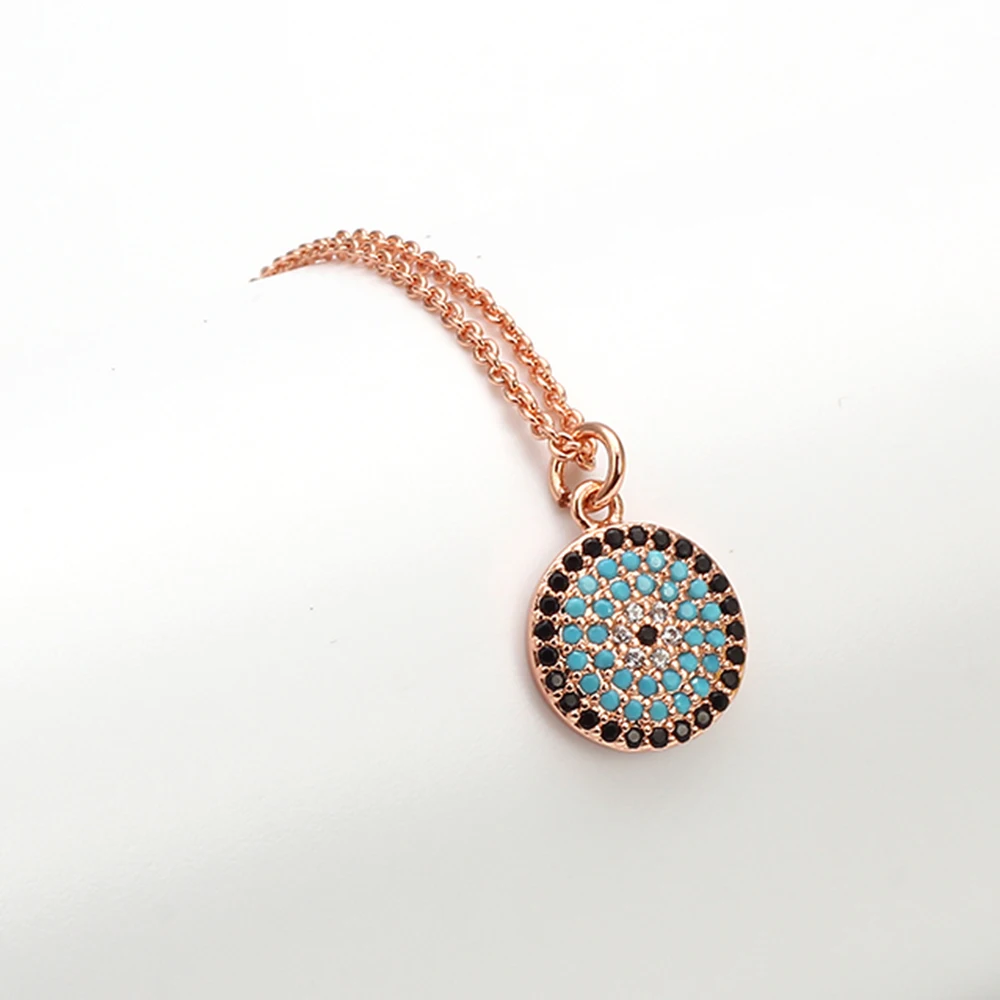 Турецкое ожерелье Lucky Eye Круглый зловещий, ожерелье из розового золота и серебра с микровставкой из циркония, Женское Ожерелье EY6408