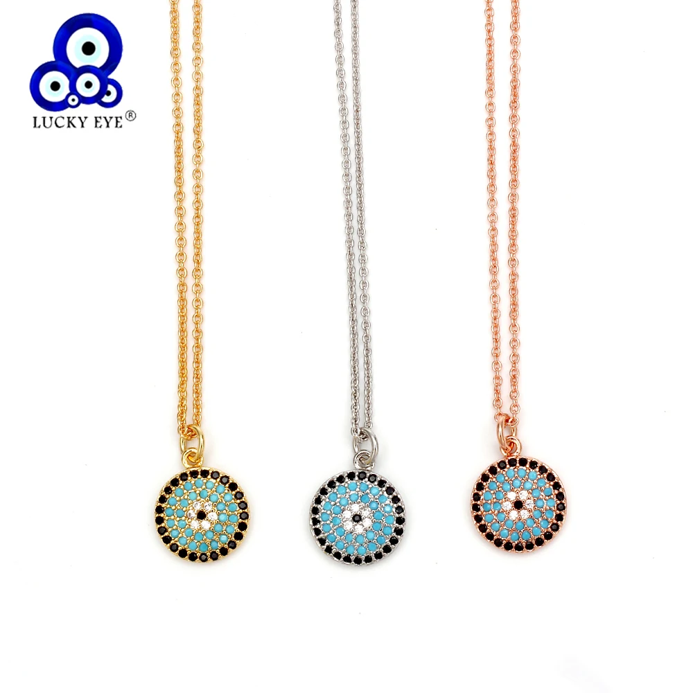 Женское Ожерелье с кулоном Lucky Eye EY6408, ожерелье в турецком круглый зловещий, розовое золото, серебро, микро циркон