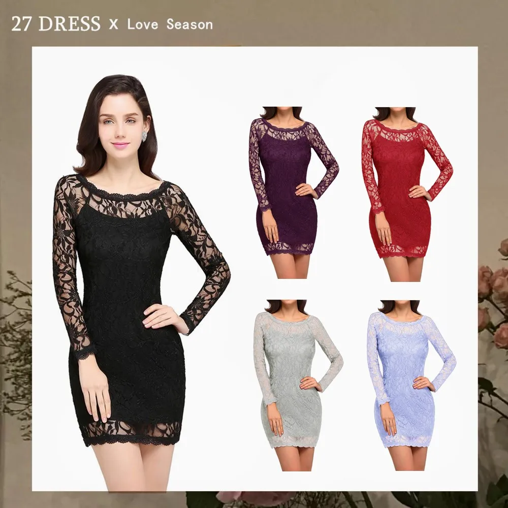 Babyonlinedress сексуальные черные кружевные коктейльные платья с длинными рукавами Короткие вечерние платья с вырезами Vestidos Coctel Robe de Cocktail