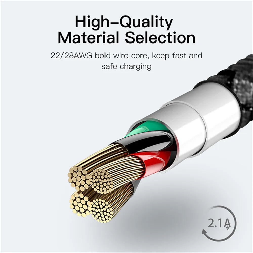 Металлический порт + нейлоновая оплетка, делает изделие прочным и устойчивым к запутыванию и запутыванию.