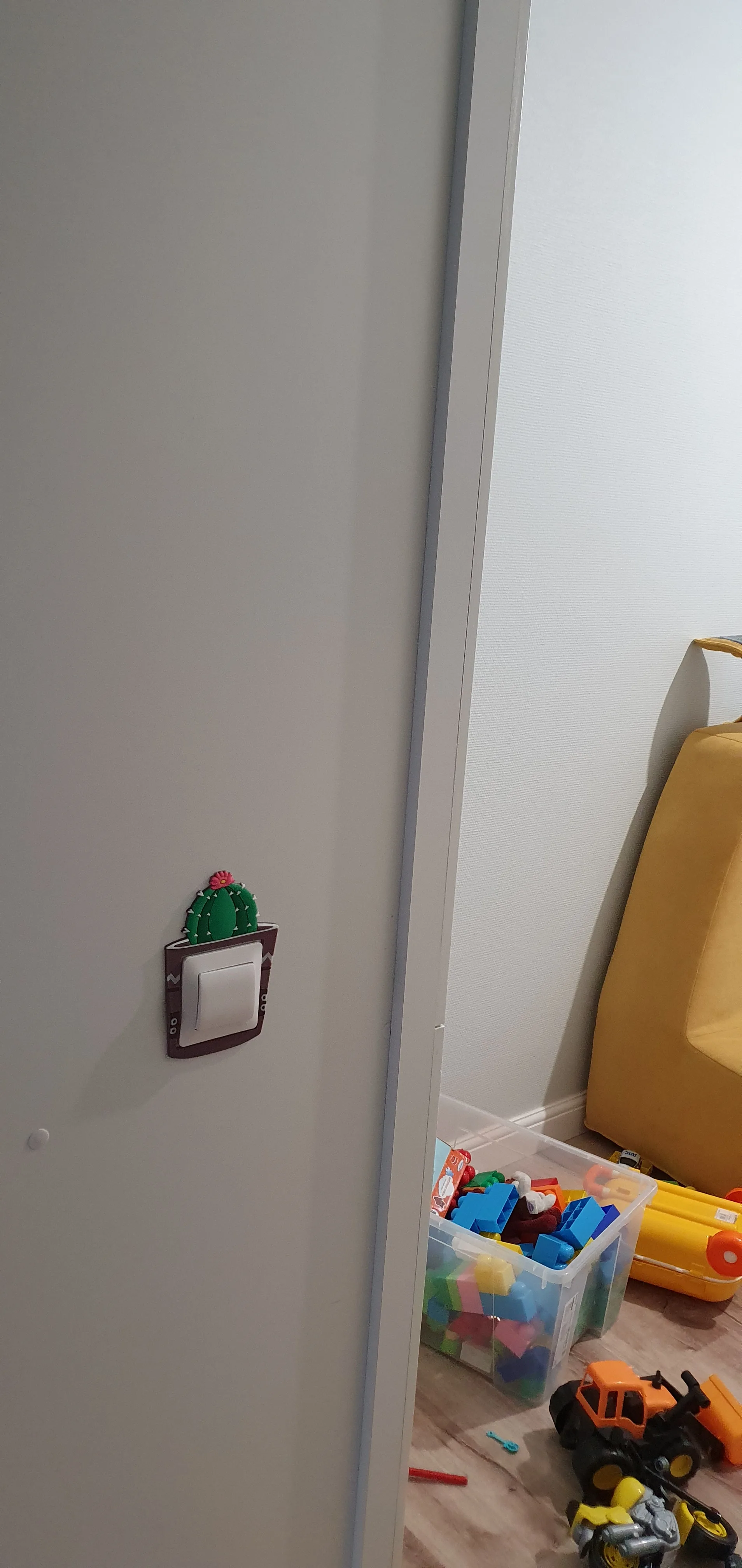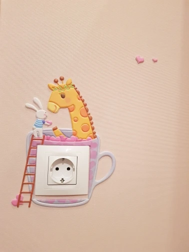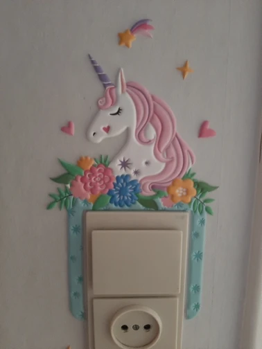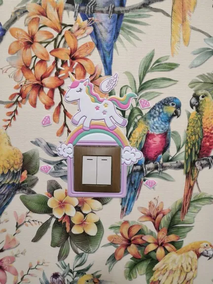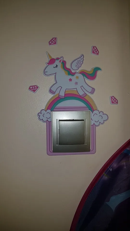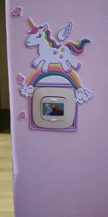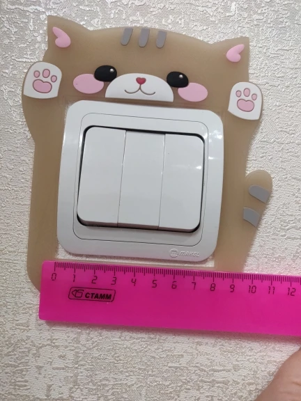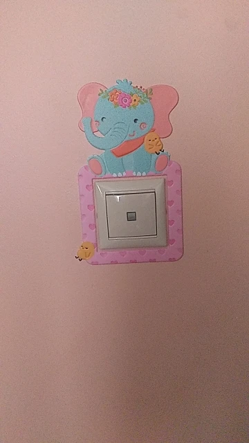 Очень понравился этот декор. Отлично смотрится в детской. Качество хорошее, без запаха))) Хорошо на выключатель размером 8,3-8,5мм. Если меньше , то уже будет большой зазор и смотреться будет не красиво. Учтите этот момент, замеряйте свои выключатели. У нас 8,3мм есть маленькие зазоры по краям, но смотрится хорошо.