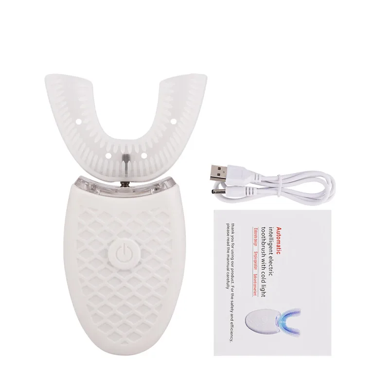 Артикул: DC127Нано электрическая зубная щетка с голубым светом полностью автоматическая ультразвуковая волна Водонепроницаемая зубная щетка с беспроводной зарядной базойОсобенности:【Превосходный материал 】u-образная головка зубной щетки изготовлена из пищевого силикона, мягкая, Нетоксичная и не вредная, эффективно стерилизуется и комфортно массирует.【 4 рабочих мода】режим мягкой чистки, мощный режим очистки, режим массажа и режим холодного отбеливания. Вы можете настроить его, просто нажав выключатель питания.【 U-образный дизайн Предназначен для идеальной установки рта человека, при вибрации в 48000 об/мин, он очищает зубы без мертвых углов.【Smart и удобное использование 】usb перезаряжаемый обеспечивает безручную чистку зубов, а IPX7 водонепроницаемый для более эффективного и удобного использования.【Автоматическая функция памяти 】автоматическая функция памяти делает 45 секунд время чистки зубов, и 15 минут холодного света время отбеливания зубов.【Strong сильная функция adopted ультразвуковая волновая технология, она может удалить больше зубных пятен, налета, бактерий в короткие сроки, предлагаем более здоровые и отбеливающие зубы.Спецификация:Материал: АБС + силиконИсточник питания: зарядка через USBЕмкость аккумулятора: 400 мА · чВремя зарядки: прибл. 2 часаВремя непрерывного использования: 30 минутНапряжение: 5VМощность: 5 ВтКласс водонепроницаемости: IPX7Частота вибрации: 48000 об/минИндикатор зарядки: мигает синий свет во время зарядки, постоянно включается при полной зарядкеРазмер товара: 11.6x6.6cmЦвет: белый, черныйСписок набора:Электрическая зубная щетка аккумуляторная зубная x 1USB кабель-1 шт.