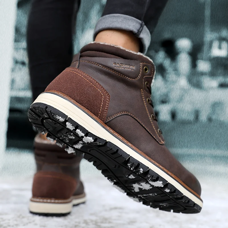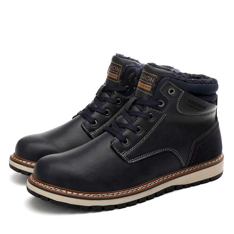 Мужские теплые зимние ботинки MARSON, повседневные винтажные ботильоны, обувь для прогулок, плюшевая обувь на плоской подошве для взрослых, для зимы