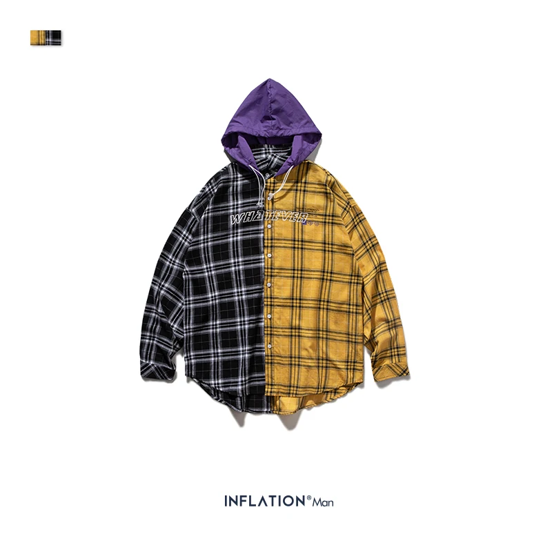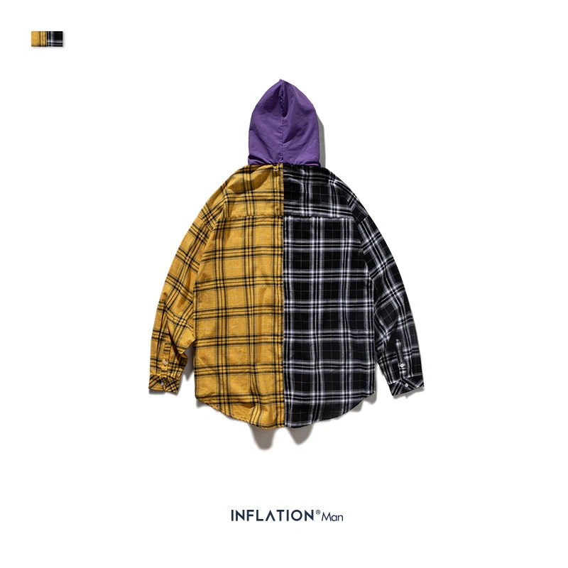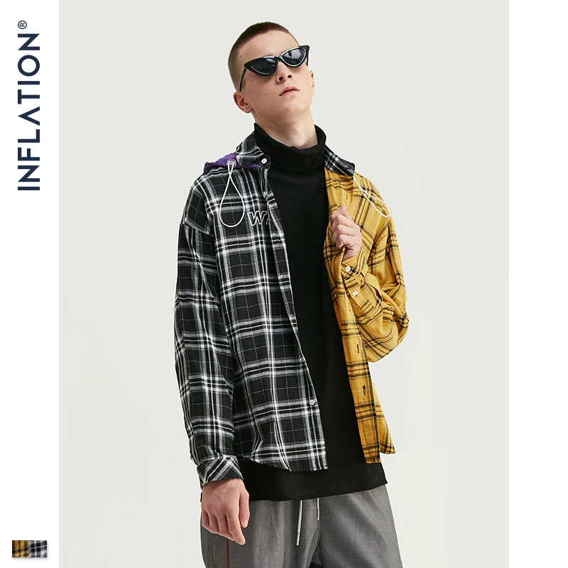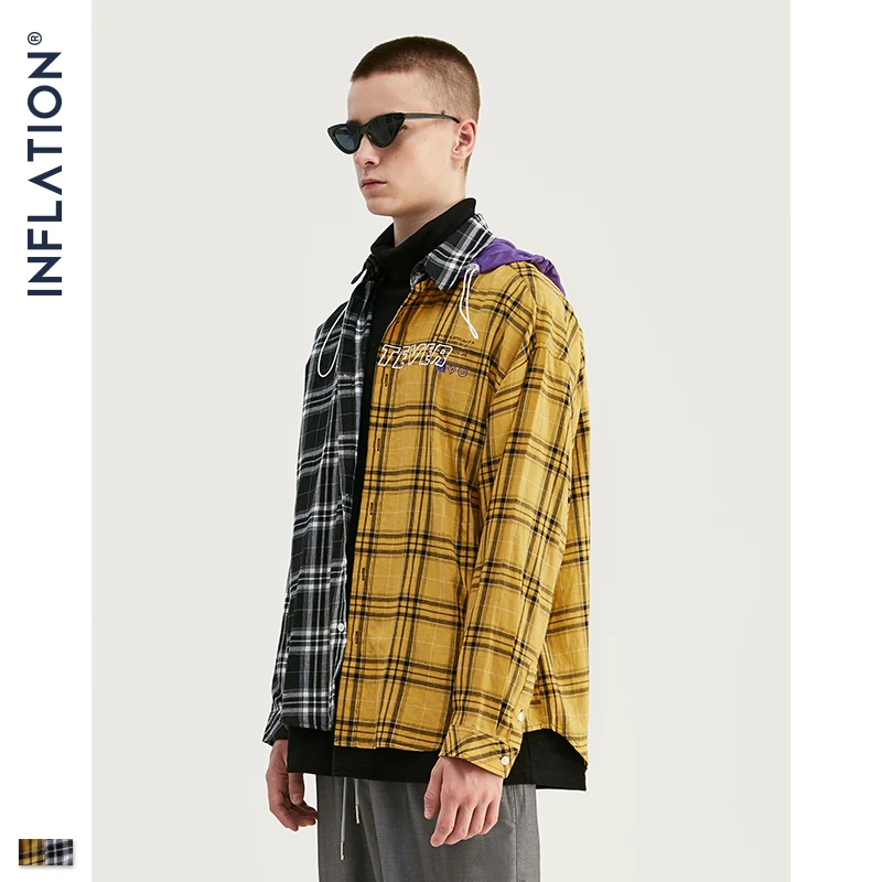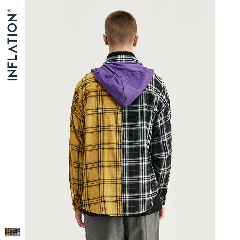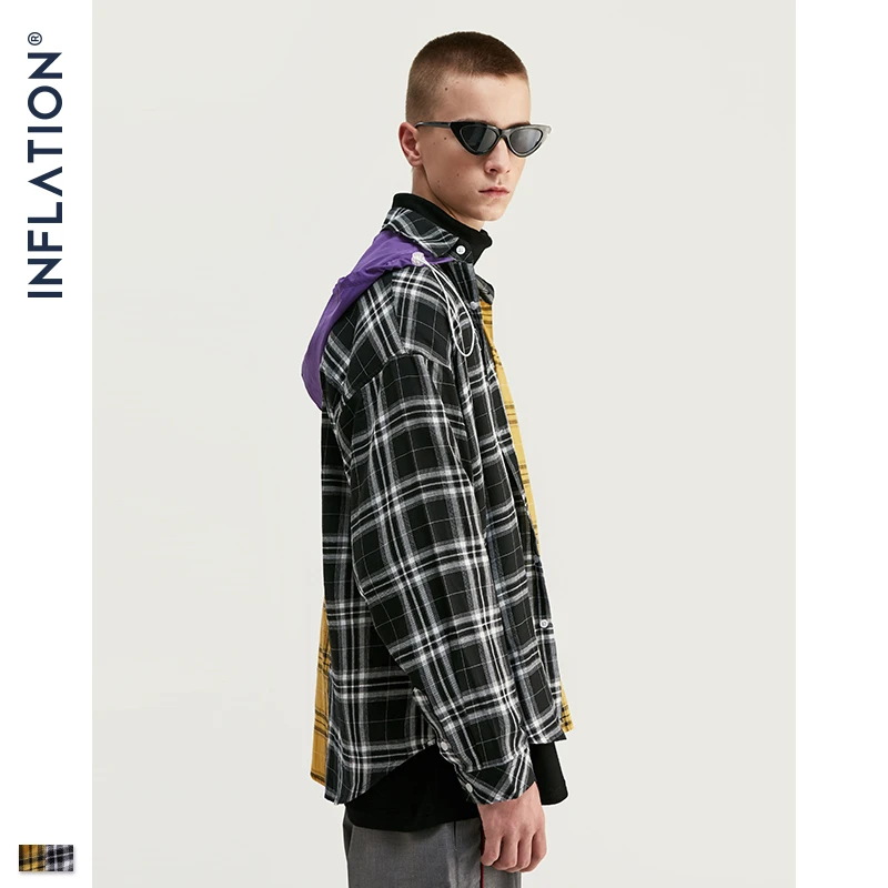 Мужская рубашка с капюшоном INFLATION 2020 AW, осенняя Фланелевая рубашка с капюшоном оверсайз, цвета черный, желтый, 92132W