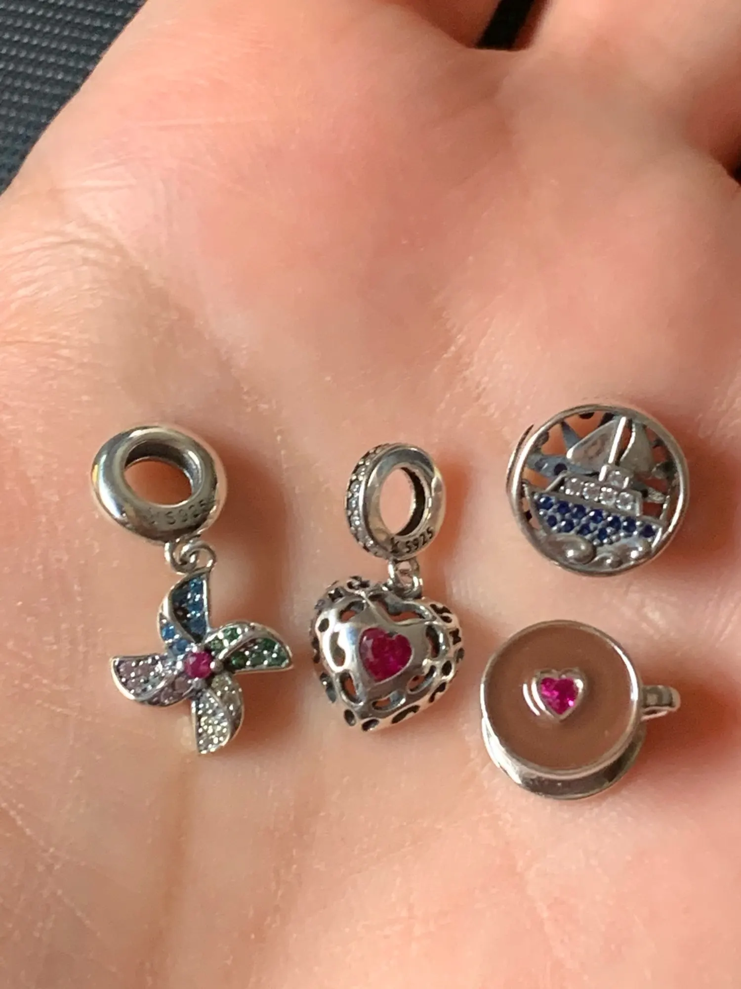 Я заказал браслет и два шарма. Они были в идеальном состоянии. Средний Шарм был подарком от продавца. Он также отправил один ушной/ушной манжет. Оба подарка милые. Не серебристый, но Хей, они подарок :) спасибо за это. На двух, которые я заплатил, есть отметка 925 пробы. Браслет также. Я получил 18 см.