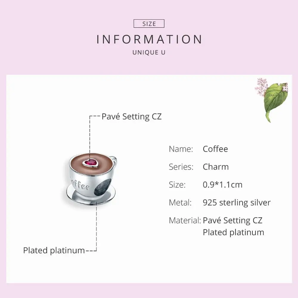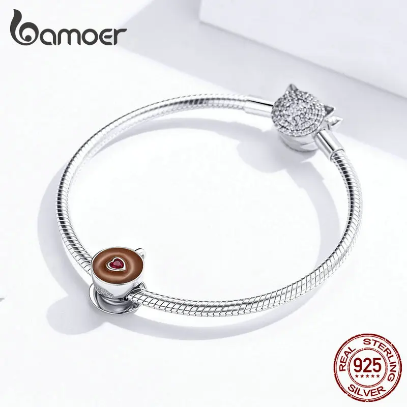 Bamoer кофейная чашка, металлические бусины для женщин, шармы пандора серебро 925 оригинальные европейский браслет с подвесками из стерлингового серебра 925 пробы, эмаль, модные украшения с шармами SCC1286