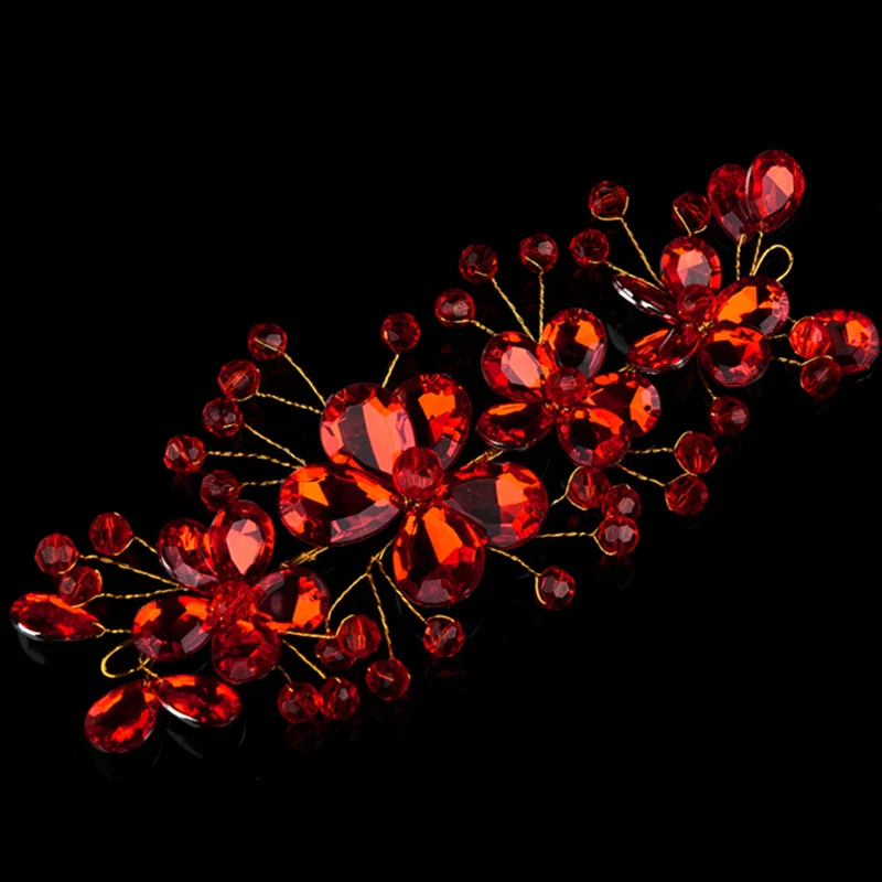 Свадебные аксессуары для волос свадебный головной убор Красные кристаллы бусины резинки для волос ручной работы цветок, повязка на голову для невесты