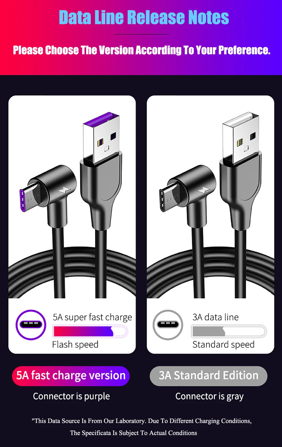 Type90 Degree USB Type C Cable For Huawei Samsung Xiaomi