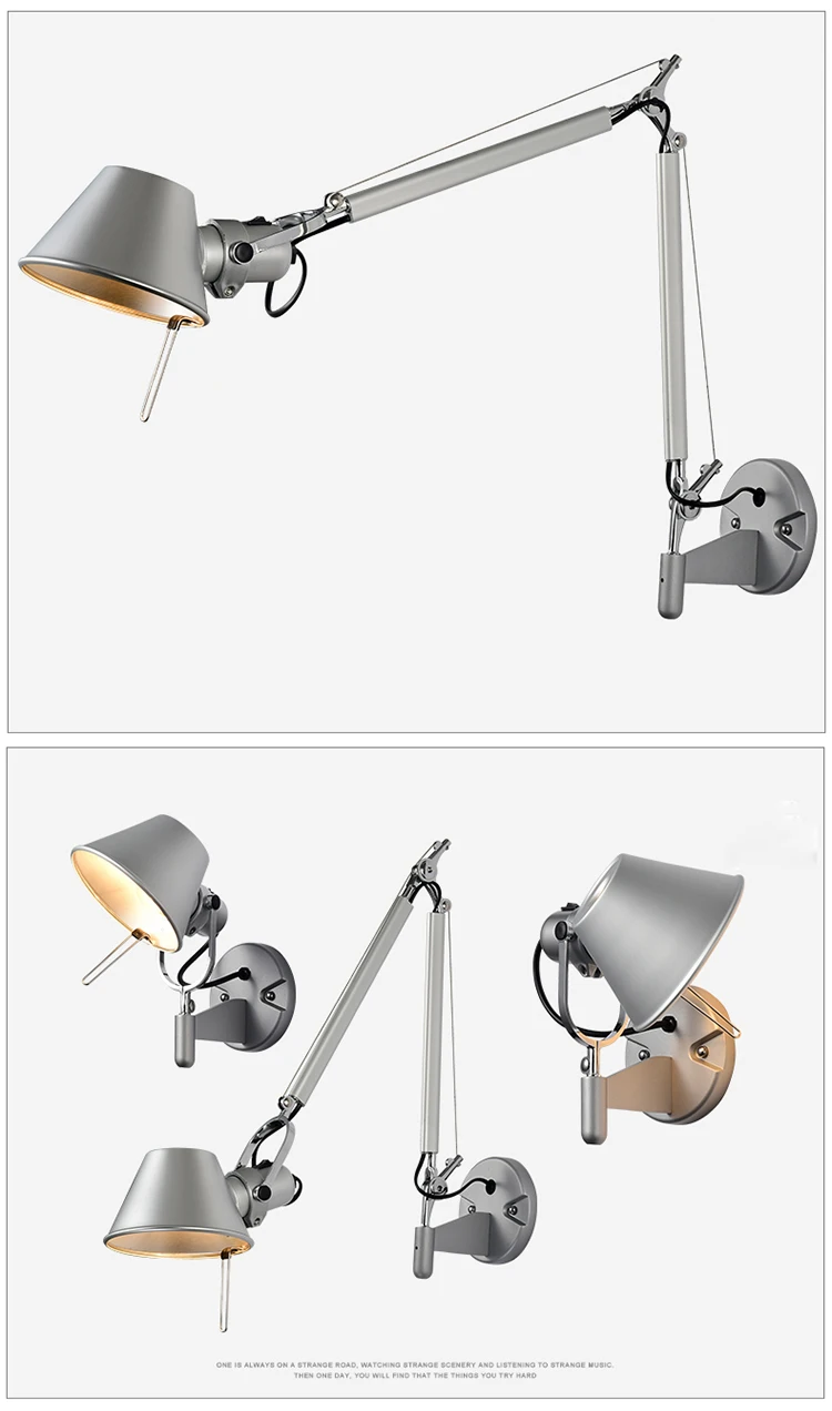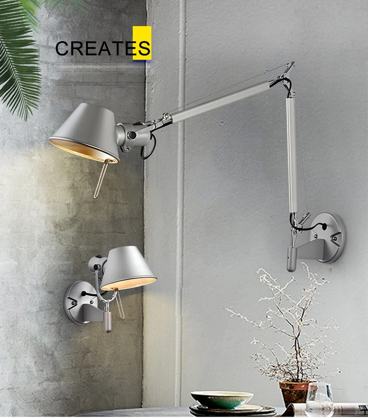 Современные длинные регулируемые Гибкие Настенные светильники-качели с защитой глаз из серебра AC90-260V пробы, прикроватный светильник для гостиной, спальни