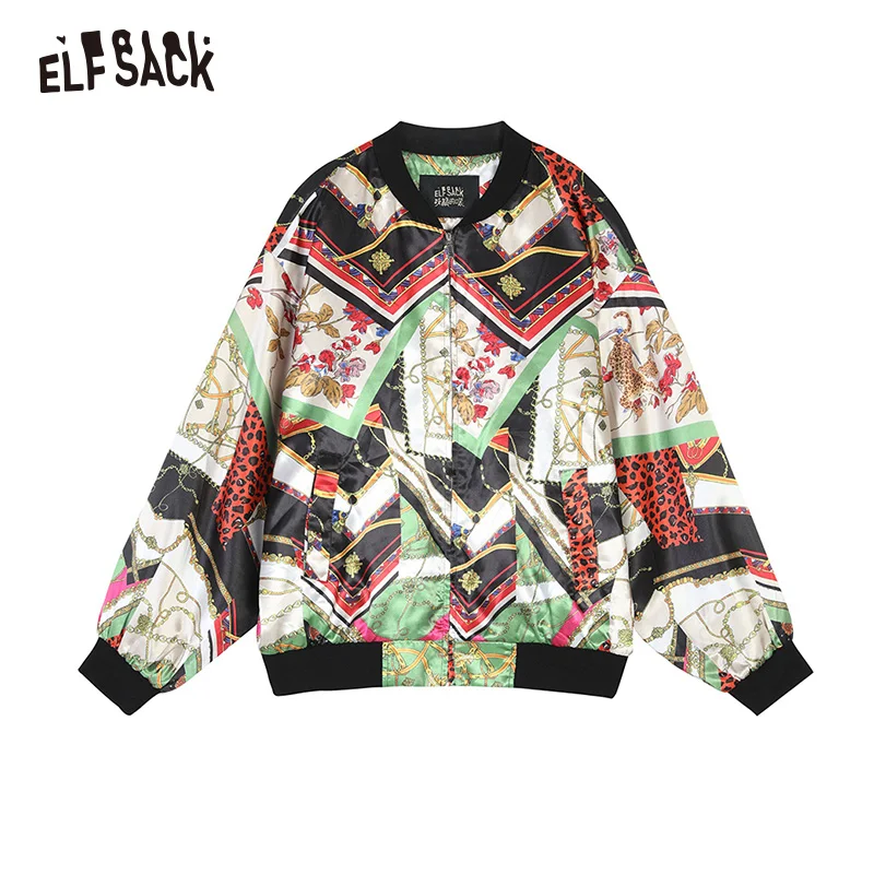 ELFSACK винтажные женские пальто с несколькими принтами, осень 2019, уличная одежда, повседневные корейские свободные женские куртки, Новая модная женская верхняя одежда