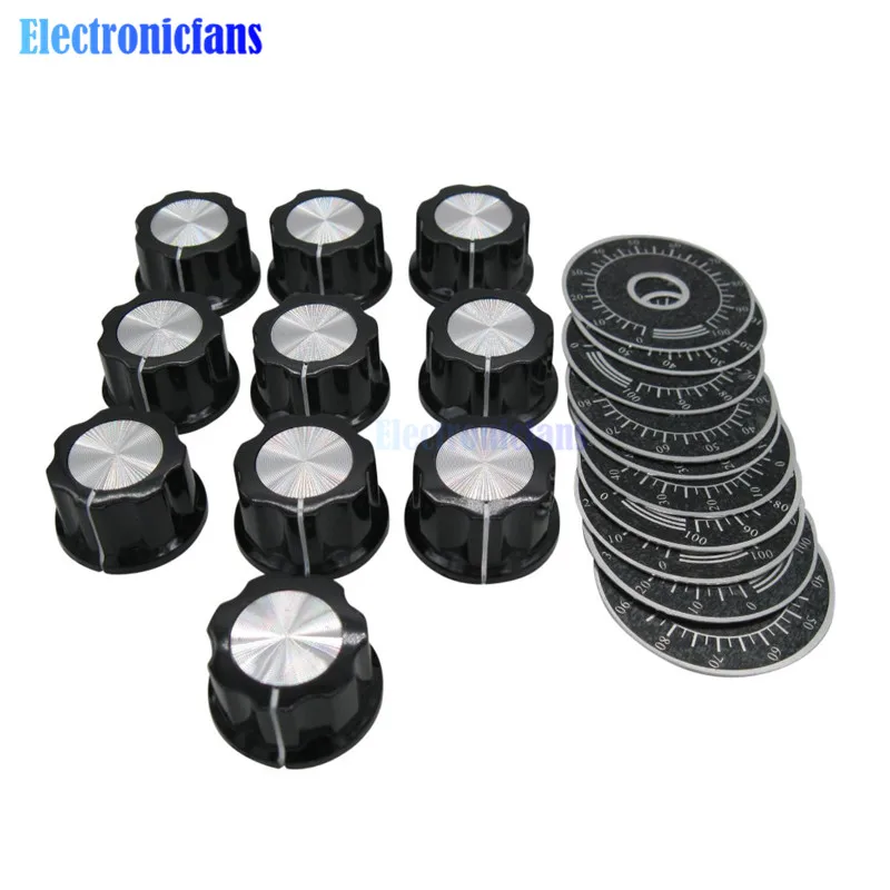 Набор из 20 ручек циферблата MF-A03 A03 WTH118, Регулируемые вращающиеся кнопки управления потенциометром + листы для шкалы 0-100