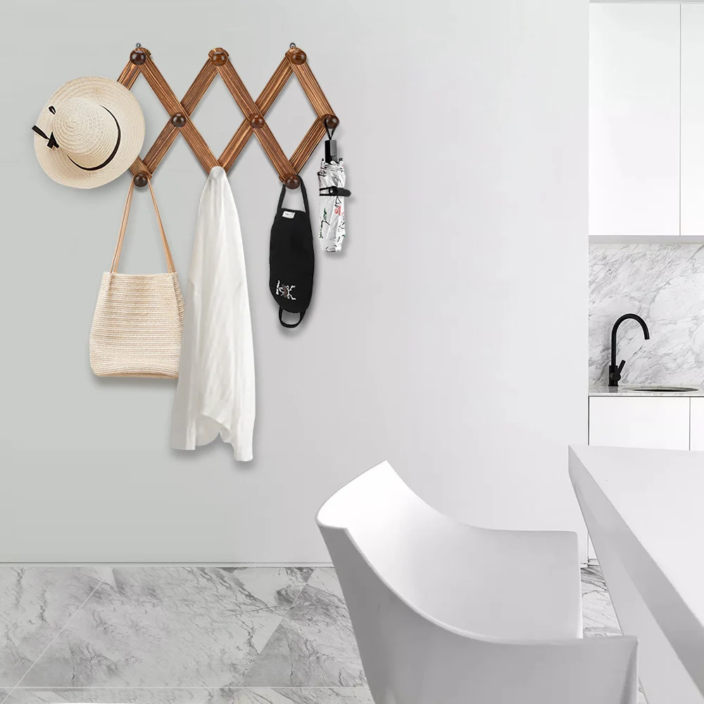 Деревянная раздвижная вешалка для одежды, 10 крючков, вешалка для шляп и сумок, для дома, спальни