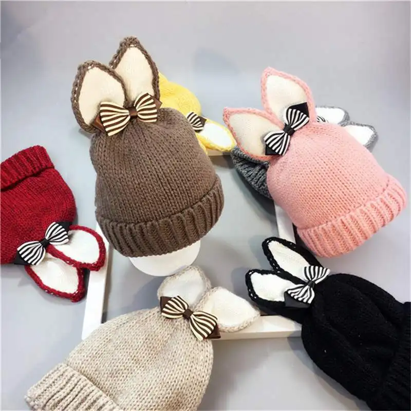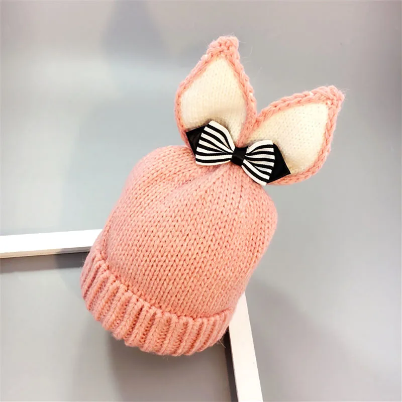 Шапка-бини с кроличьими ушками, теплая, зимняя, для девочек