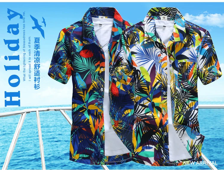 Гавайская рубашка мужская с коротким рукавом, Повседневная пляжная сорочка с цветочным принтом, уличная одежда, Азиатский Размер 5XL