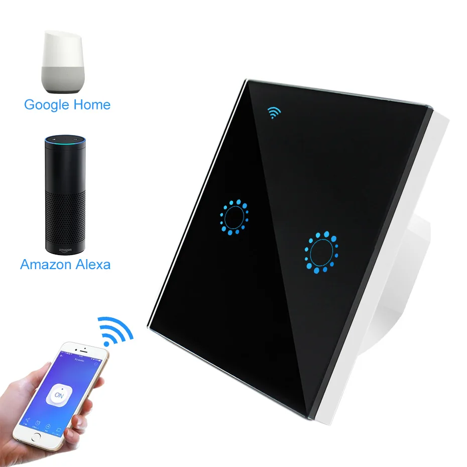 ЕС Стандартный Smart WiFi светильник Переключатель 1/2/3 комплекта, черный/Белая стена Беспроводной переключатель легко Установка работает с Alexa Google Home