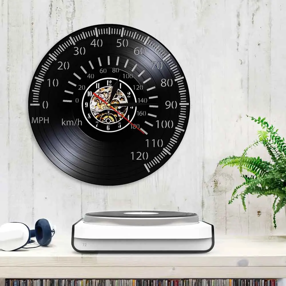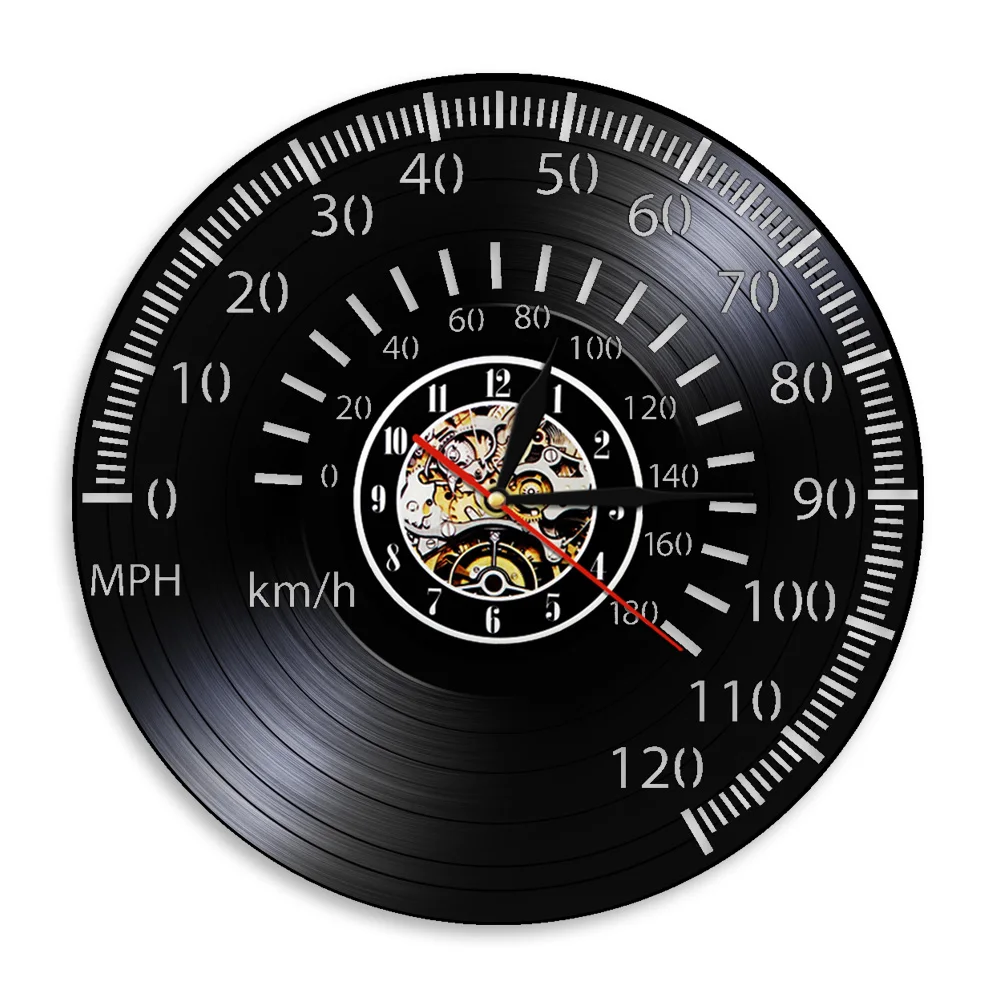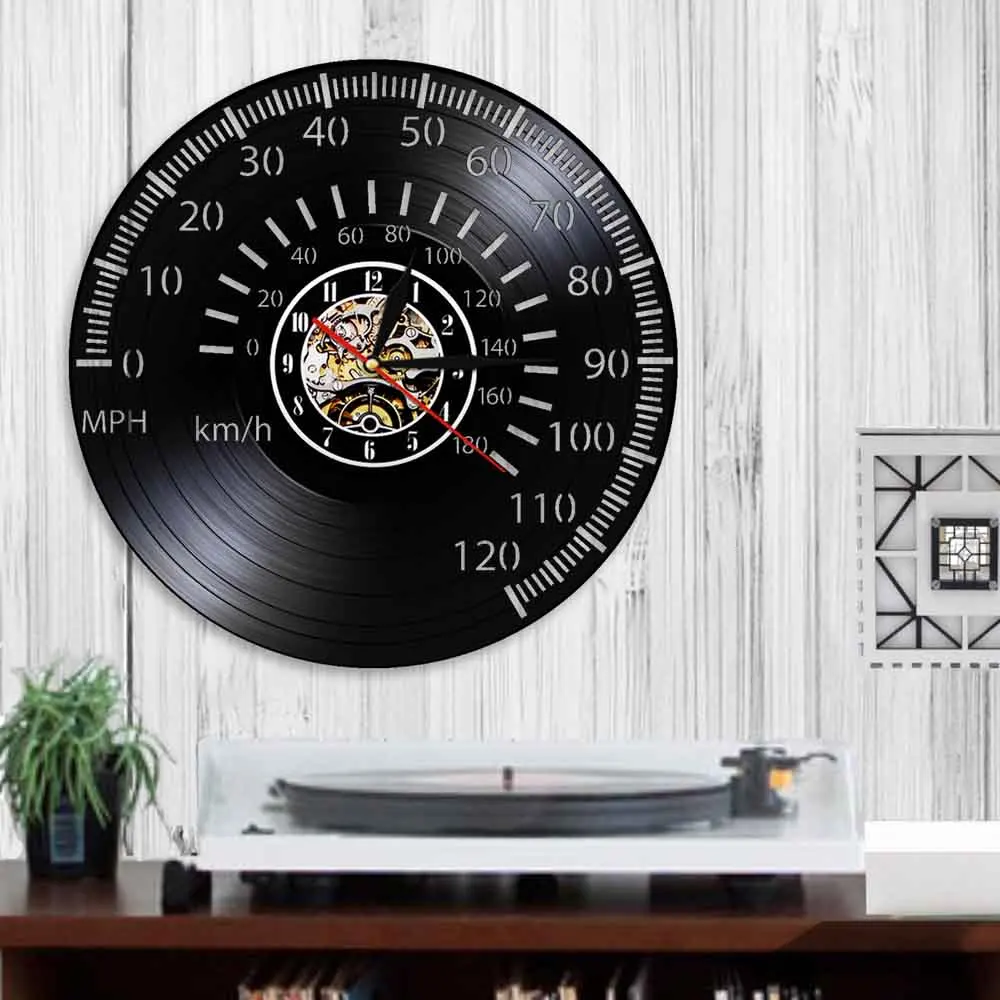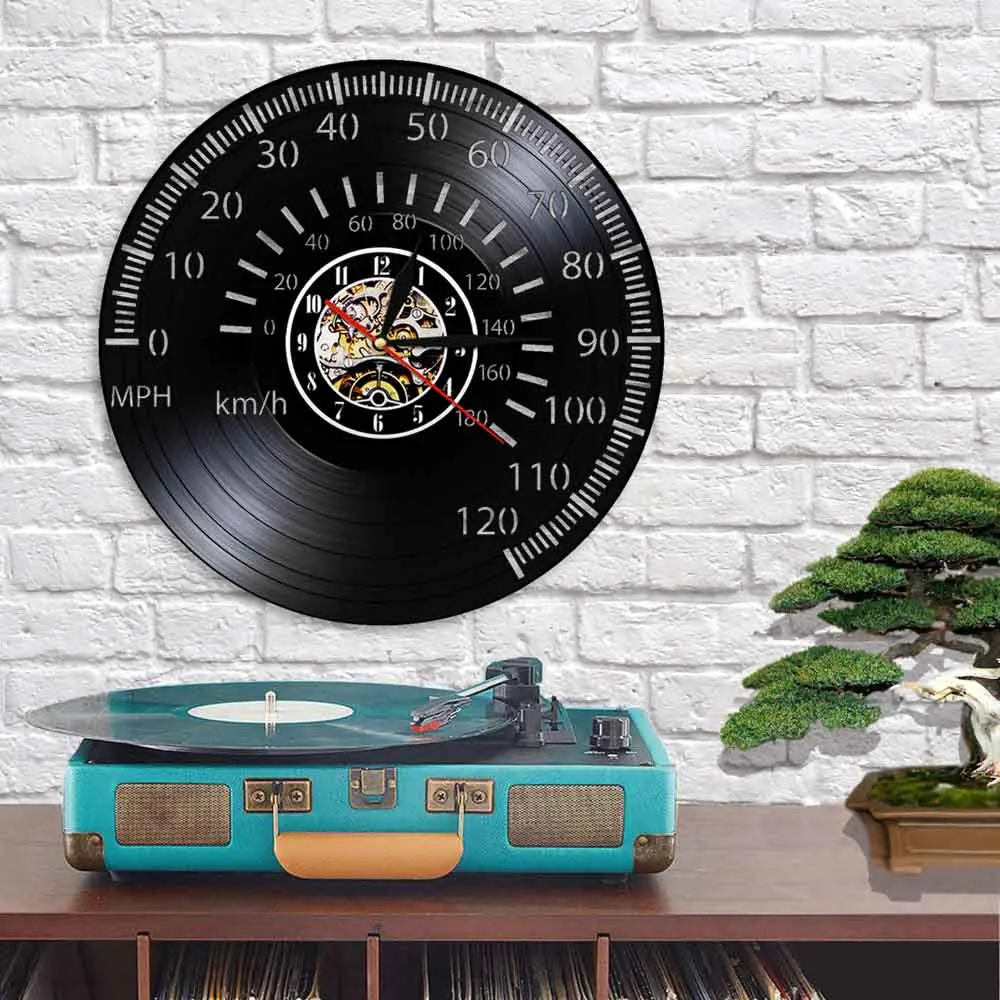 Настенные часы со спидометром и виниловой пластиной, ретро-часы для кафе, Racer, тахометр, граммофон, музыкальная запись, подарок для мотогонок, байкеров