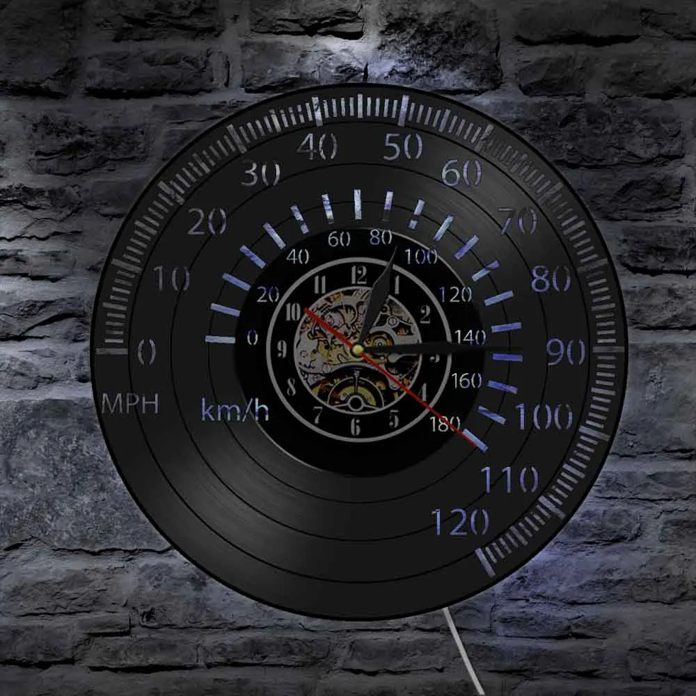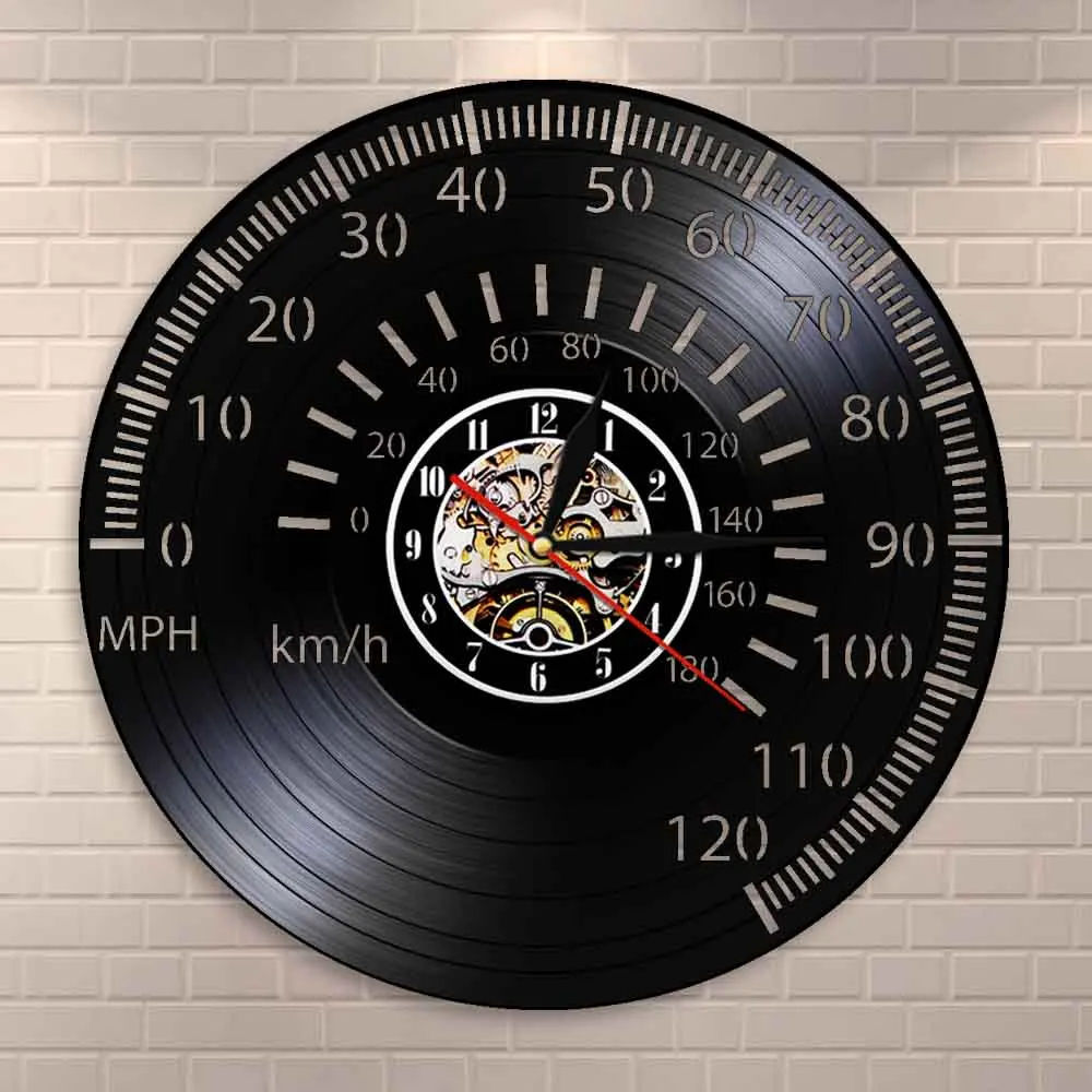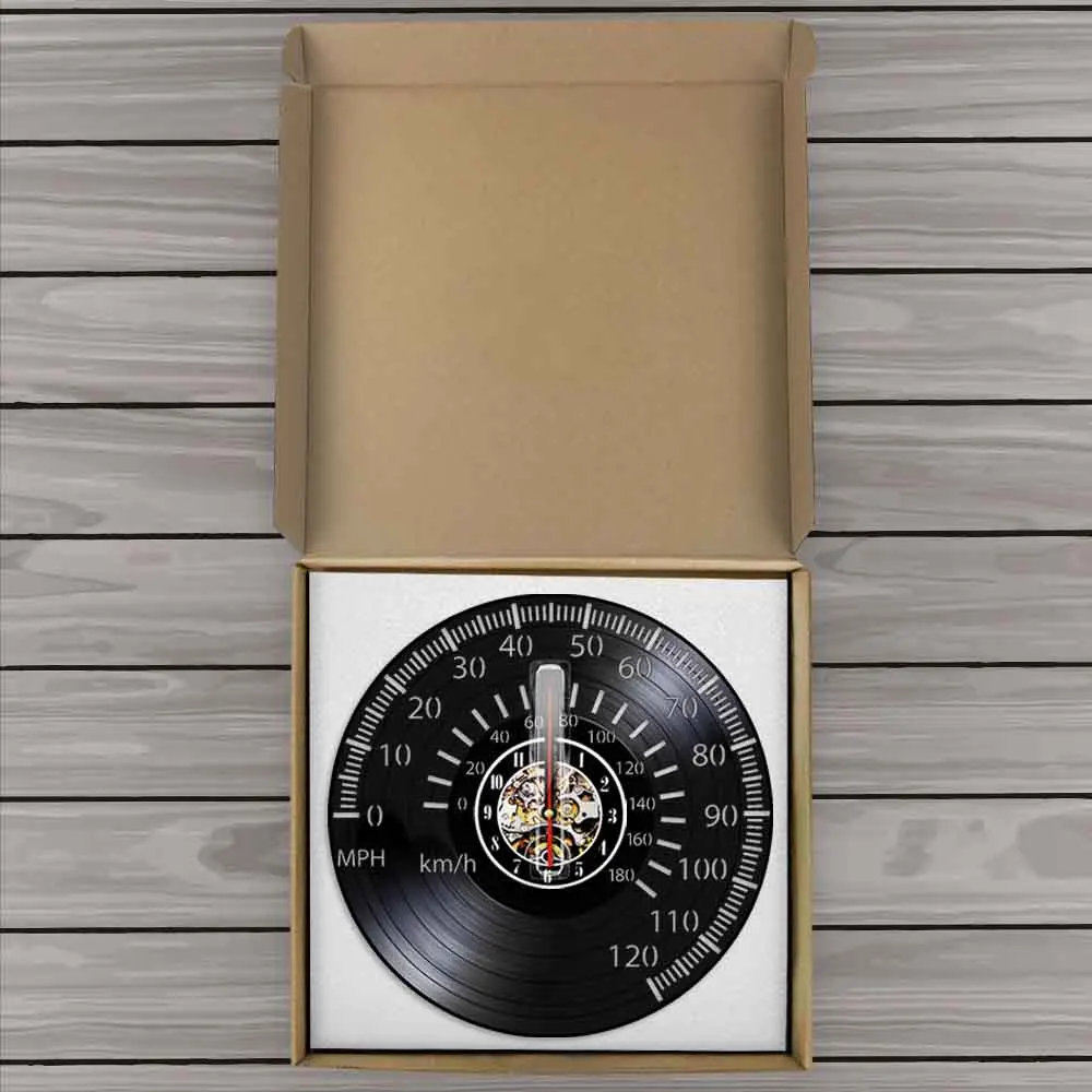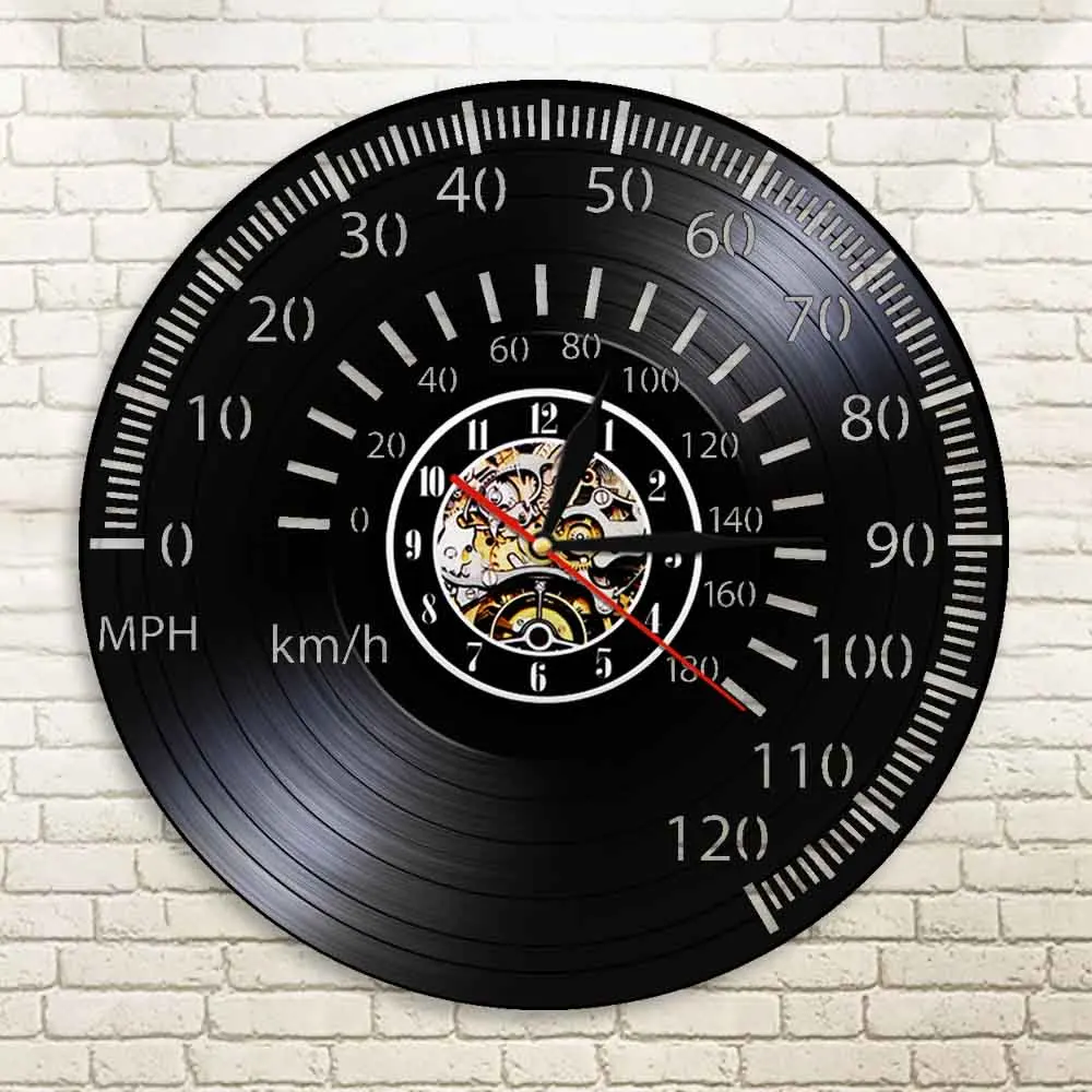Настенные часы со спидометром и виниловой пластиной, ретро-часы для кафе, Racer, тахометр, граммофон, музыкальная запись, подарок для мотогонок, байкеров