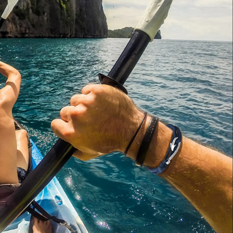 HOMOD браслет на запястье с крючком серебряного цвета с фурнитурой в виде якоря для женщин и мужчин, хит продаж, дизайнерский плетеный браслет из полиэстера ручной работы