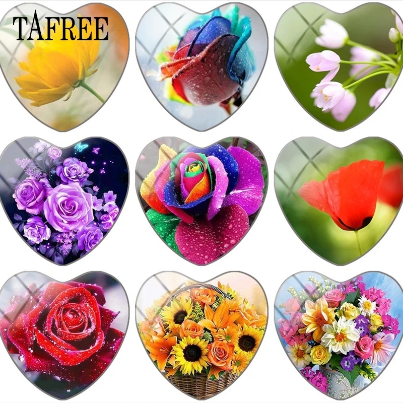 Стеклянный купол TAFREE в виде букв и цветов, 25 мм, в форме сердца