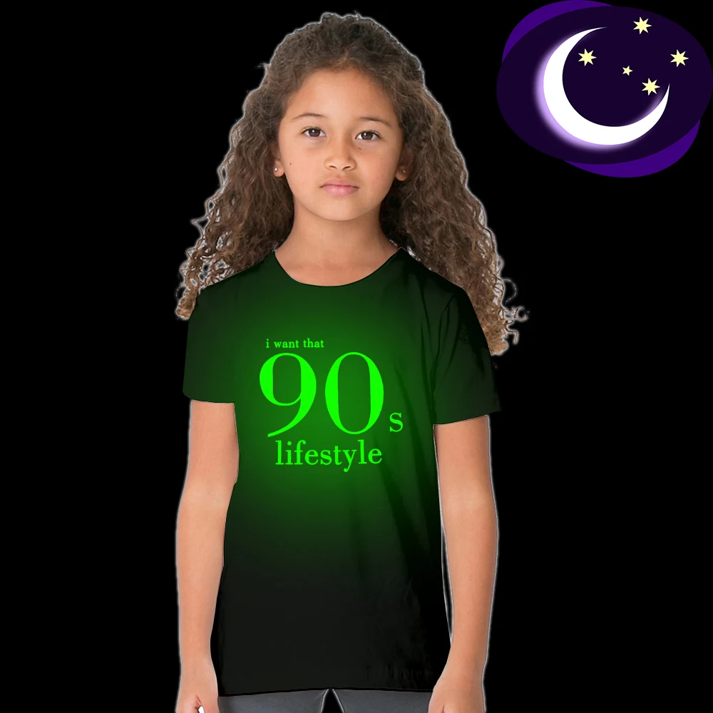 Модная детская светящаяся Футболка с принтом в стиле 90-х, унисекс, детская одежда для мальчиков и девочек, светящаяся в темноте, светящаяся в темноте