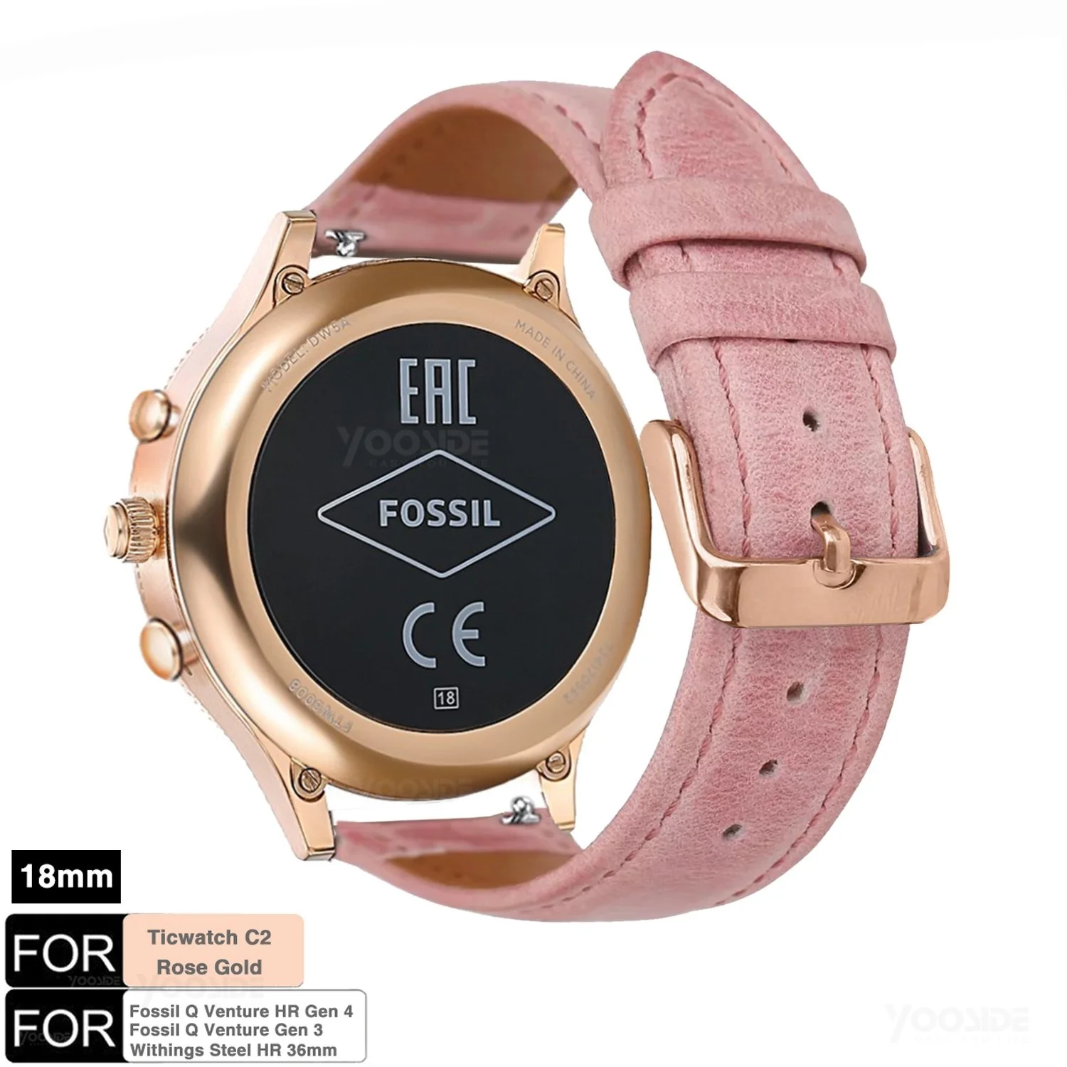 Ремешок для Fossil Venture Watch Band 18 мм быстросъемный классический кожаный женский браслет с розовой застежкой для Fossil Q Venture Gen 3Gen 4