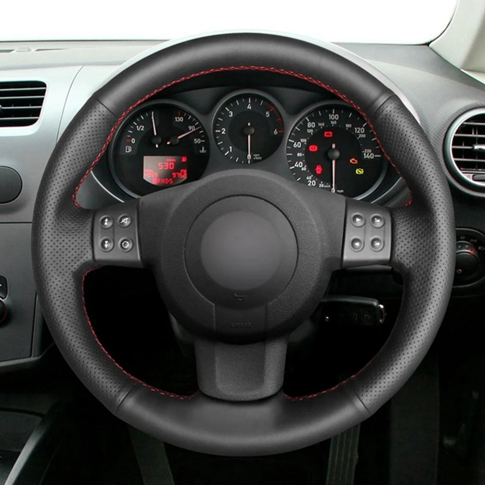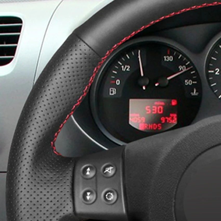 Черная искусственная кожа Чехол рулевого колеса автомобиля красный ...