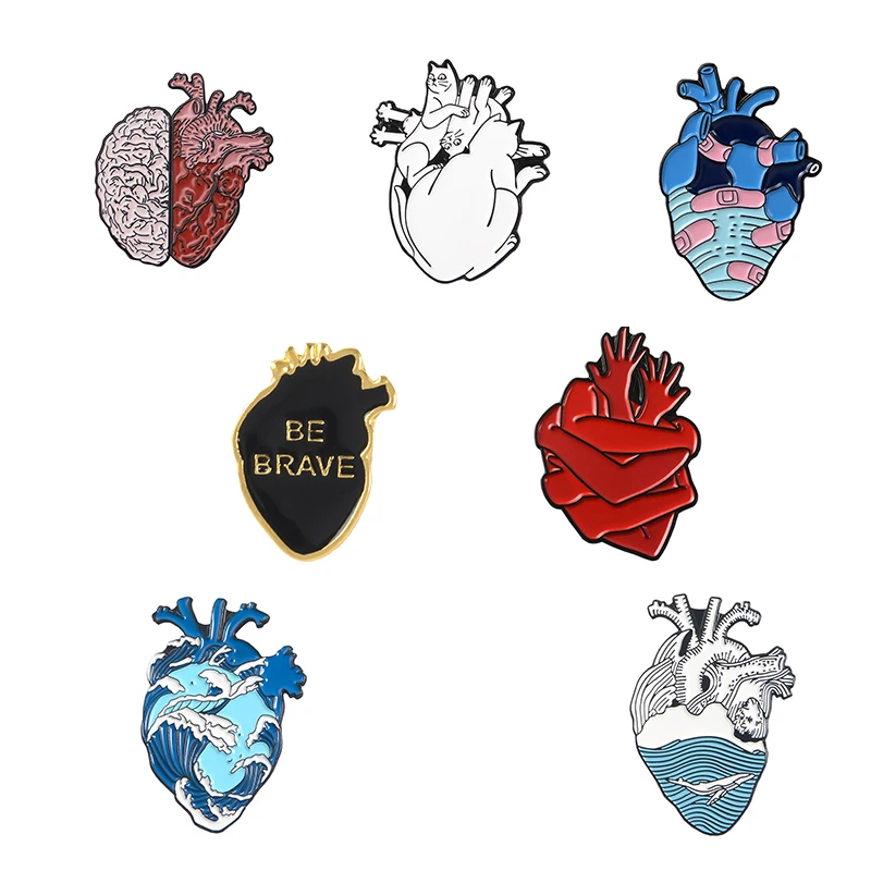 Мужскаяженская брошь на лацкан, эмалированная булавка в форме сердца, волновая повязка храбрых сердец, 7 шт., орган, анатомия