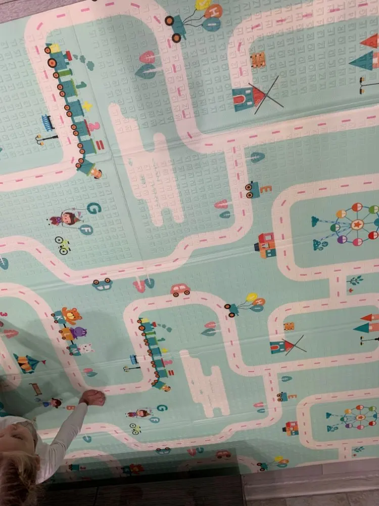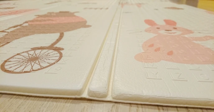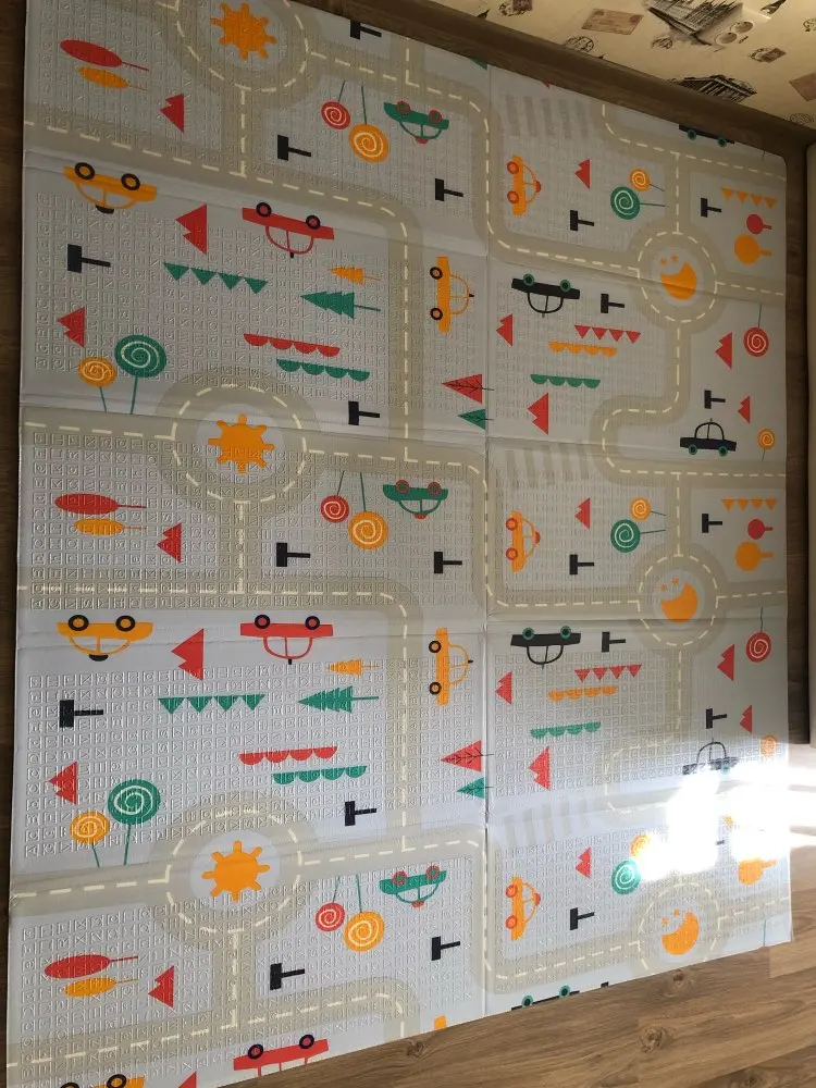 коврик хороший,качественный,без запаха,рисунки чёткие,складвается хорошо.ребенку нравится.продавец общительный. один нюанс,был немного помят при транспортировке,не приятно,но в целом не страшно
