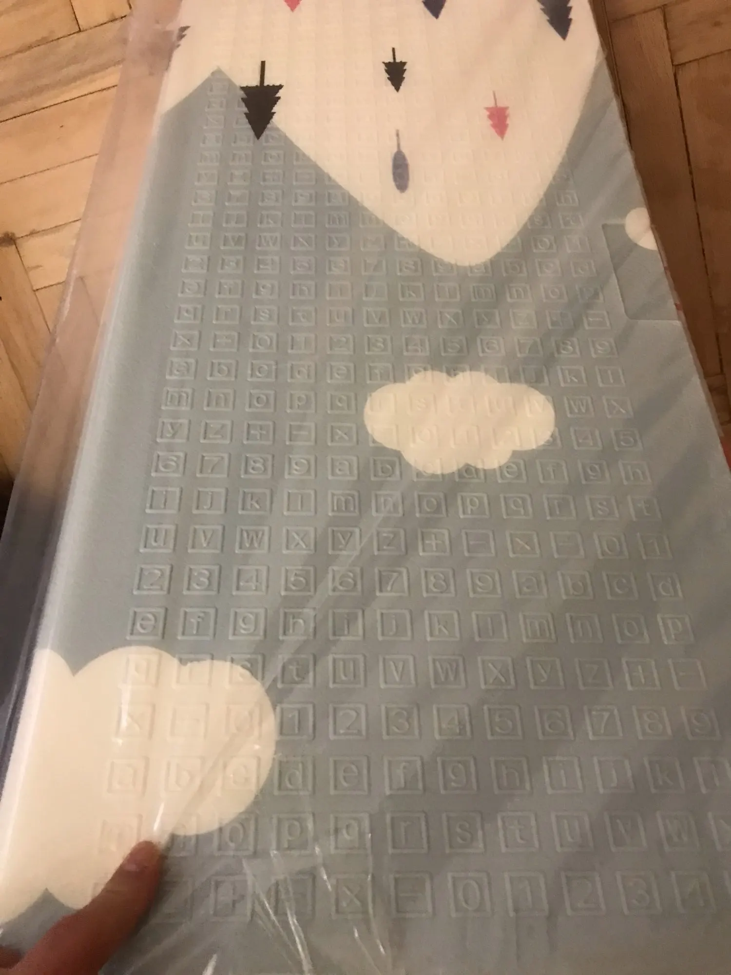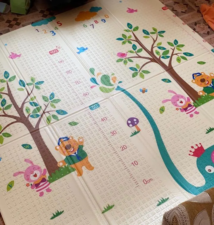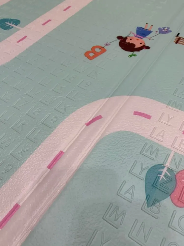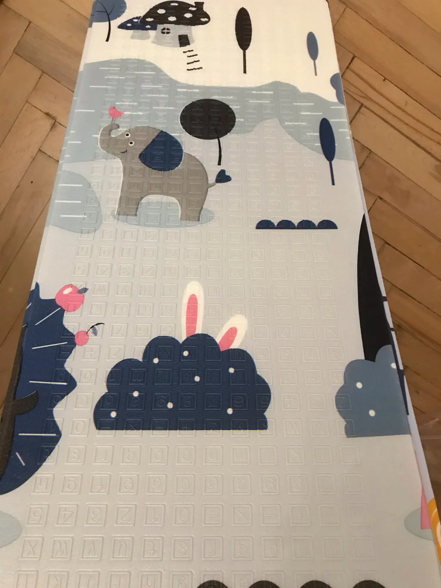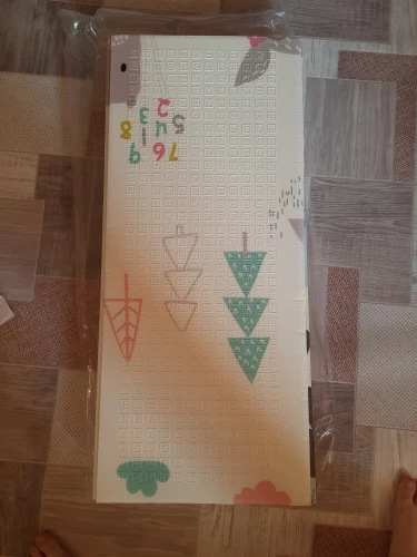 Коврик превзошёл все мои ожидания! Он большой, удобный в использовании и в хранении, цвета приятные. Размер соответствует описанию. Нам пока он большеват, поэтому со стороны розеток я сложила и подучился такой бортик. Выбиты по всему коврику цифры и английский алфавит. Заказ оформила 28.11, а получила домой курьером 01.12, супер быстро! При выборе указала РФ склад. Советую к покупке)