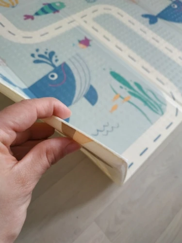 Коврик очень красивый. С одной стороны нежно голубой, с другой яркие рыбки. Действительно тёплый. Дочки с теперь весь день на нем играют. Младшая учится ползать. Без деффектов. Заказала сестре, тоже пришел за 3 дня из Москвы в Челябинск.