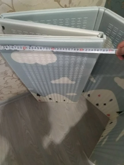 Коврик отличный, размер заказывал большой 200*180см, чтобы подошёл на весь размер свободного места в комнате, и подошёл! Если нужно расстелить часть коврика не проблема, складывается по секциям размером 37.8*89 см., (смотрите фото), очень удобно. Сам коврик на вспененной основе, но при сильном надавливании следов вмятин не остаётся, что только радует. Протирается на ура, влажной тряпкой и всё! Можно мыть, покрытие водонепроницаемое! Единственный минус, в местах соединения секций по которым коврик складывается со временем он может порваться Толщина примерно 7-8 мм! Доставка до Оренбурга в течении 3-х недель, курьером до двери, здорово! С продавцом не общался! Покупал за 1640 р. Продавца и товар однозначно рекомендую!!!