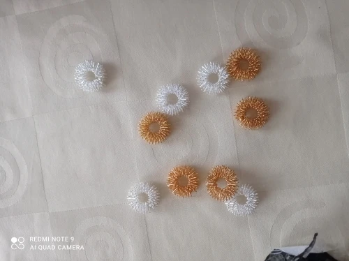 Взяла кольца белого цвета, смотрятся как из серебра массируют пальцы очень хорошо! Покупкой довольна!