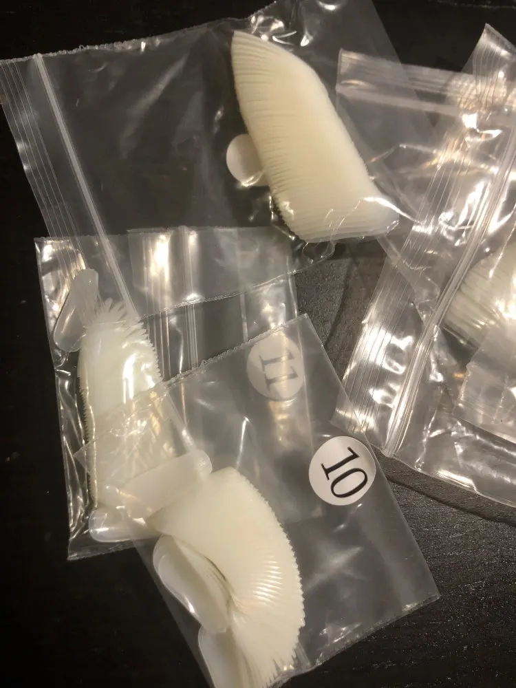 배달 개빨라용 근데 손톱 모양이 좀 우리나라에서 나오는 팁들하고 달라여 ㅜ 큐티클 부분?̊̈ 무튼 그래서 갈아서 써야할판