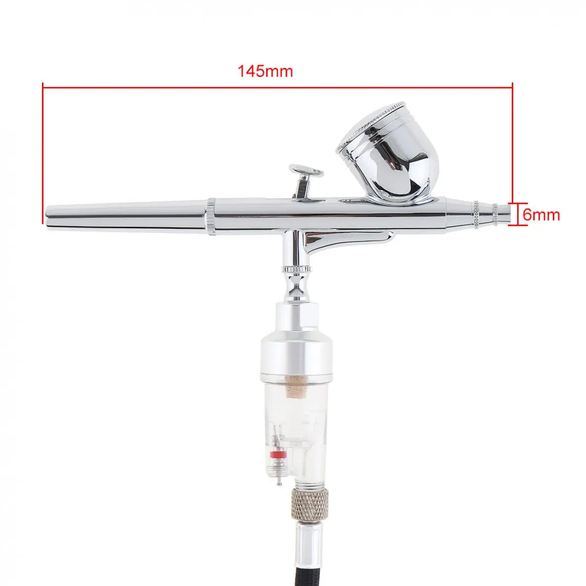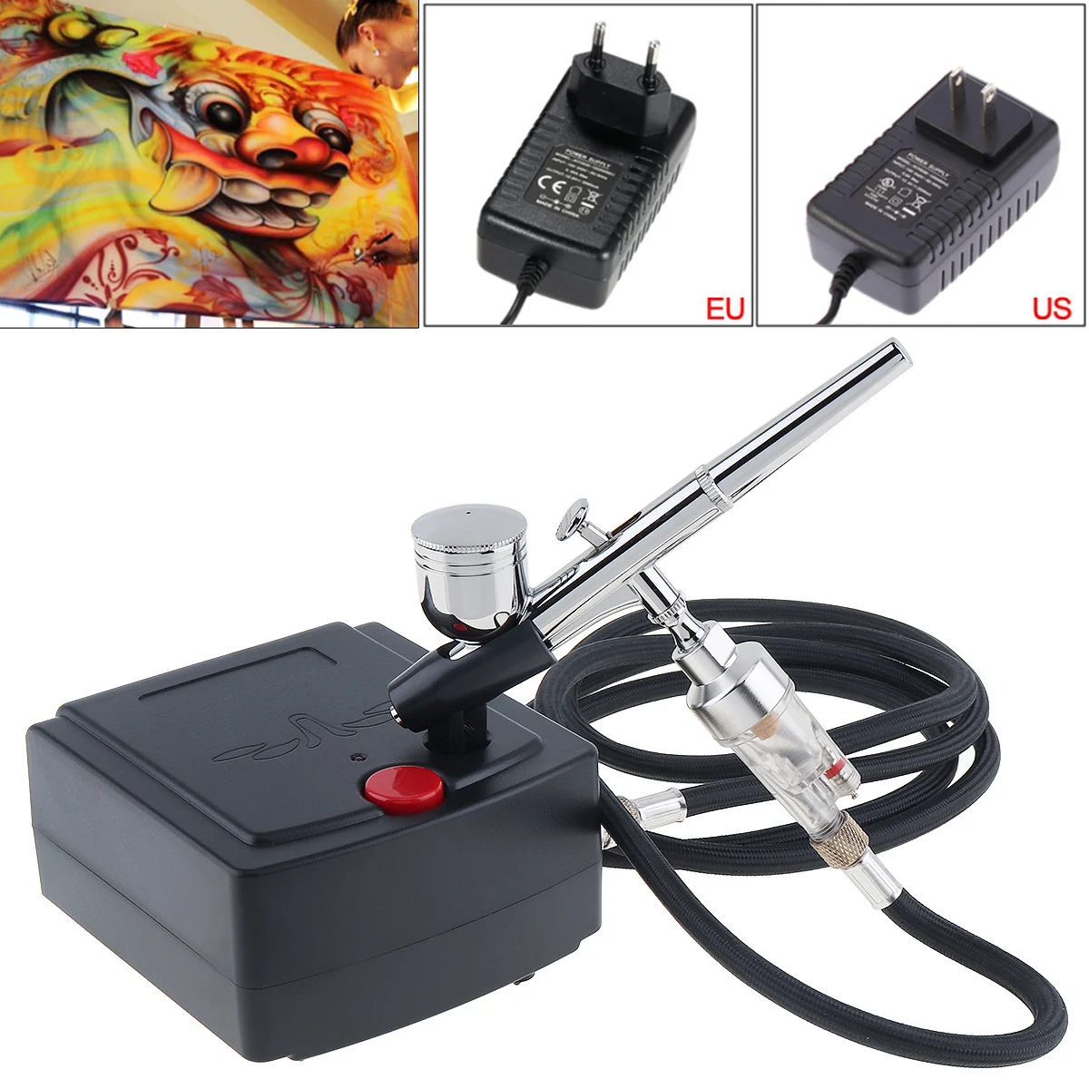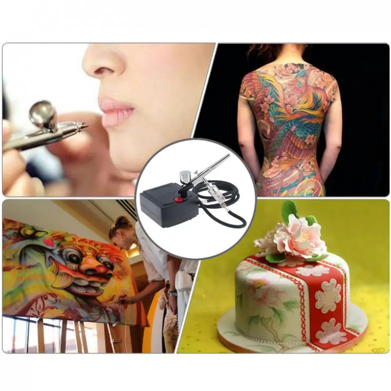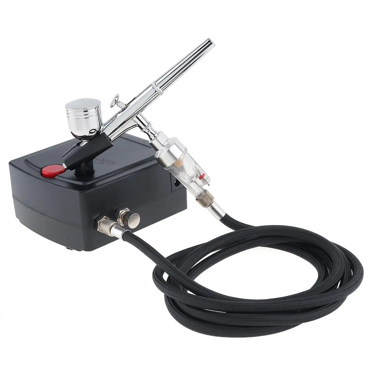 -Соберите шланг и компрессор вместе и убедитесь, что компрессор будет установлен на стабильном положении T100 маленький воздушный компрессор может сочетаться с использованием двойного действия Аэрограф, а также одно действие Аэрограф.