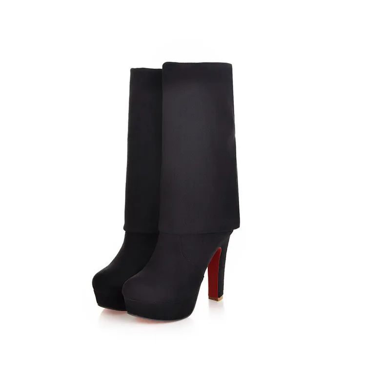 Ботфорты женские стрейчевые, высокие сапоги на платформе 12 см, каб...