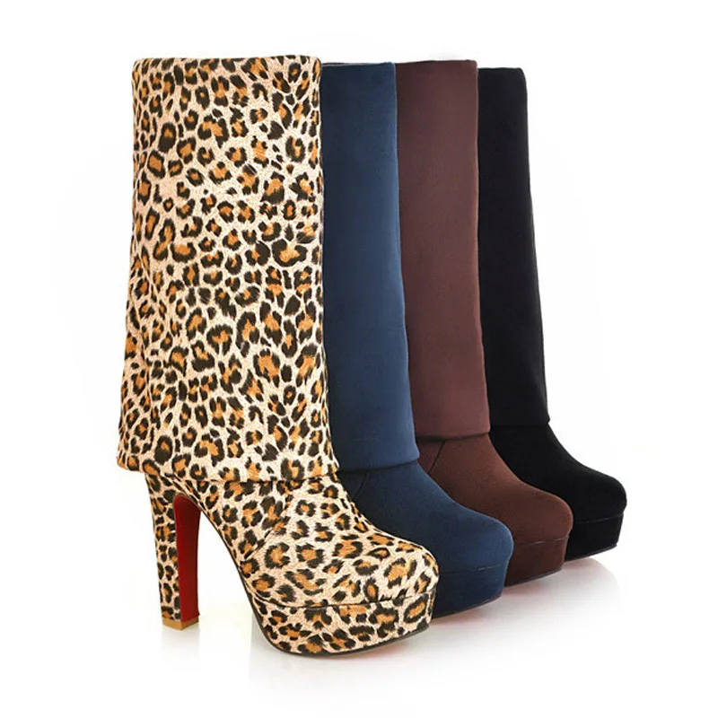 Женские сапоги выше колена, на платформе, на высоком каблуке, зимни...