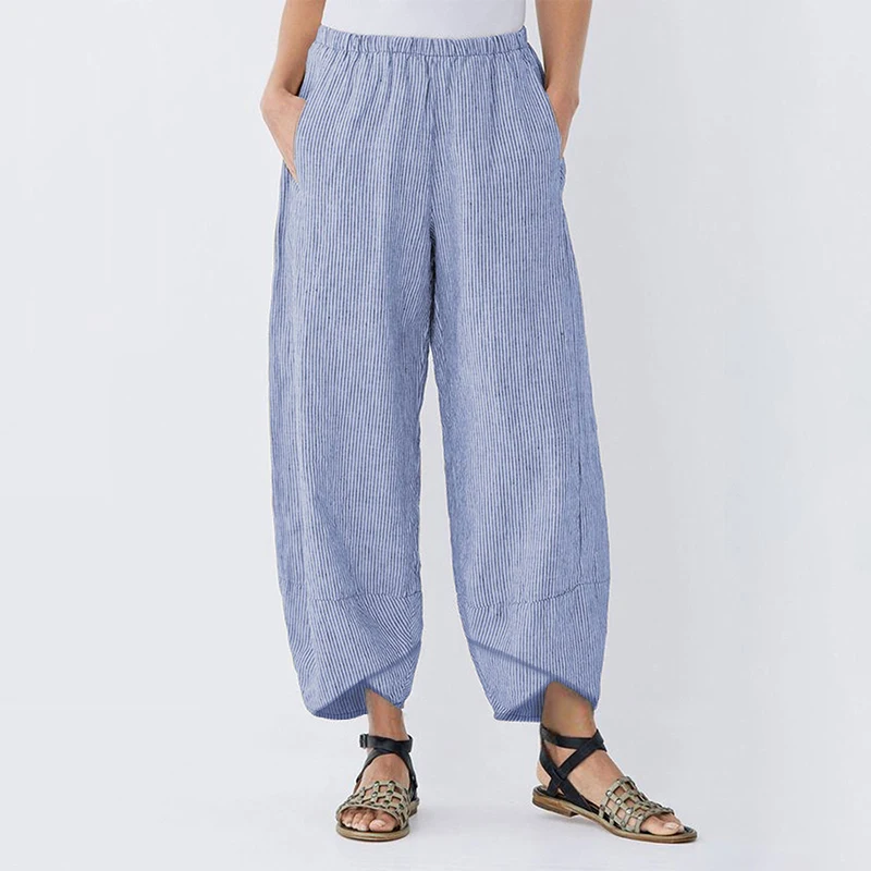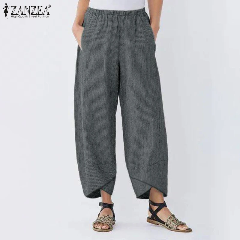 Брюки ZANZEA Женские Повседневные в полоску, осенние шаровары, кафтан с эластичным поясом, ассиметричный подол, брюки палаццо, 2022