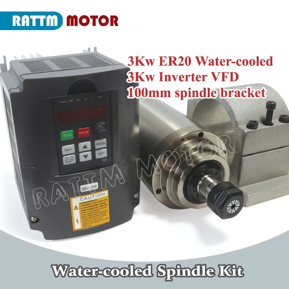 RU доставка 3 кВт ER20 4 подшипника электродвигатель шпинделя с водяным охлаждением и инвертор 3 кВт VFD 4HP 220 В и 100 мм зажимный кронштейн для фрезерного станка с ЧПУ