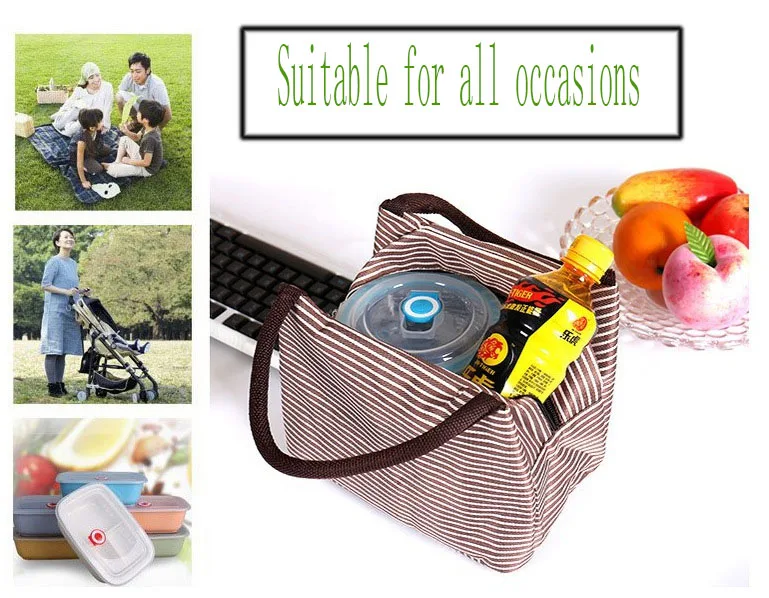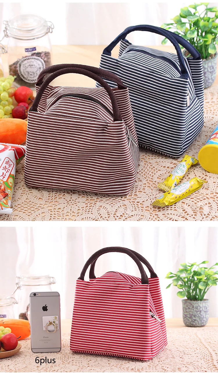 Сумка для ланча женская, в полоску, Термосумка для продуктов, изотермический мешок