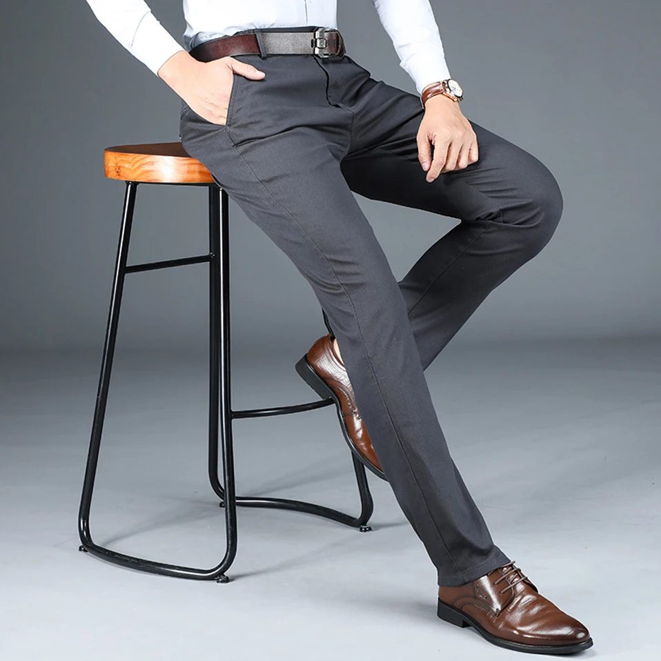 NIGRITY мужская мода бизнес случайные длинные брюки мужские эластичные прямые формальные брюки