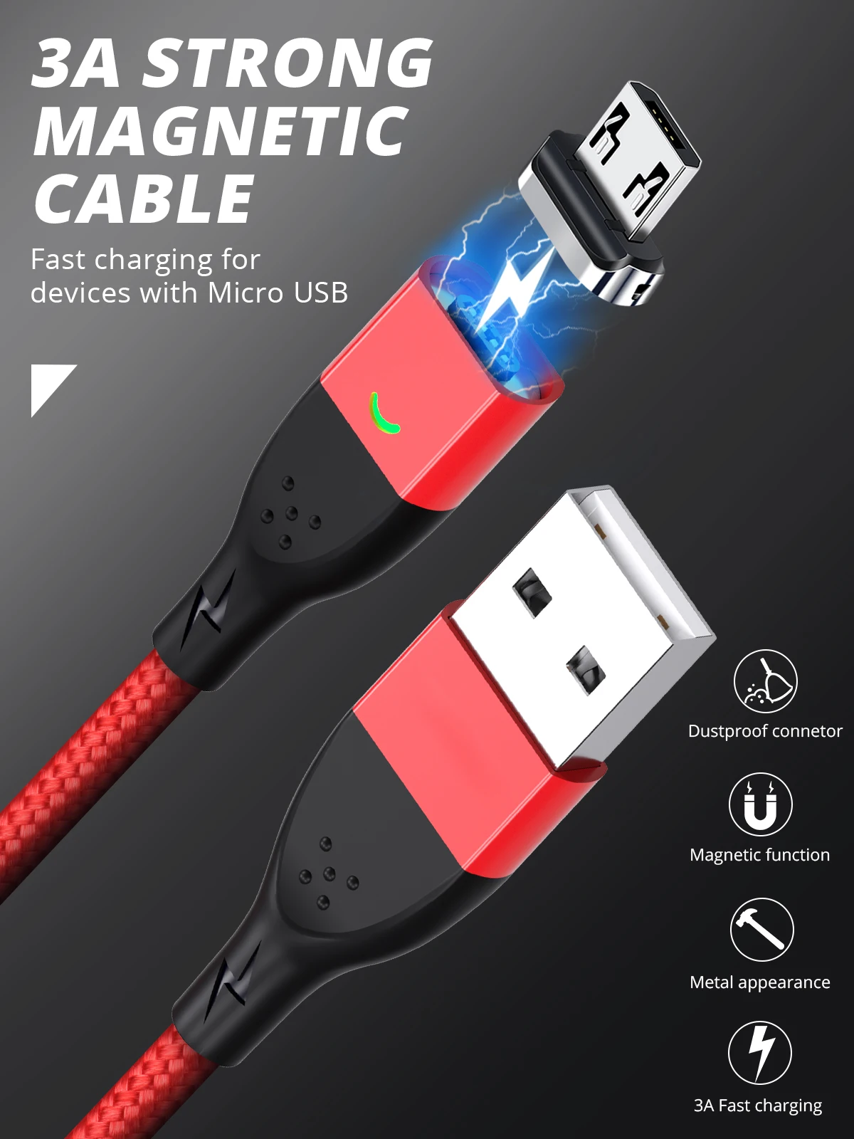 Магнитный кабель ANMONE 3A, кабель Micro USB для быстрой зарядки и передачи данных для Xiaomi OPPO VIVO мобильный телефон