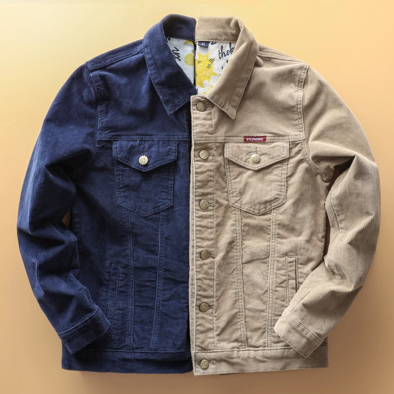 Мужская Вельветовая куртка, цвет хаки, зеленый, синий, кофейный, Повседневный, приталенный, осень 2019