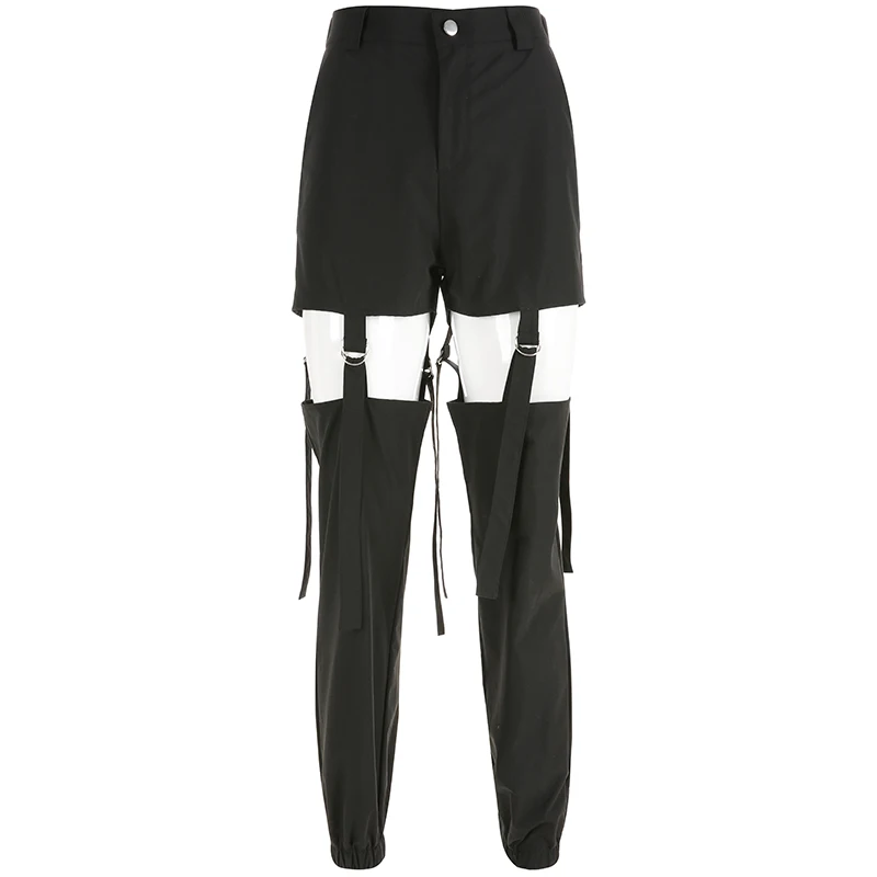 Darlingaga хип хоп Высокая талия женские брюки-карго джоггеры уличный стиль брючная Пряжка спортивные брюки регулируемые полые Панталоны