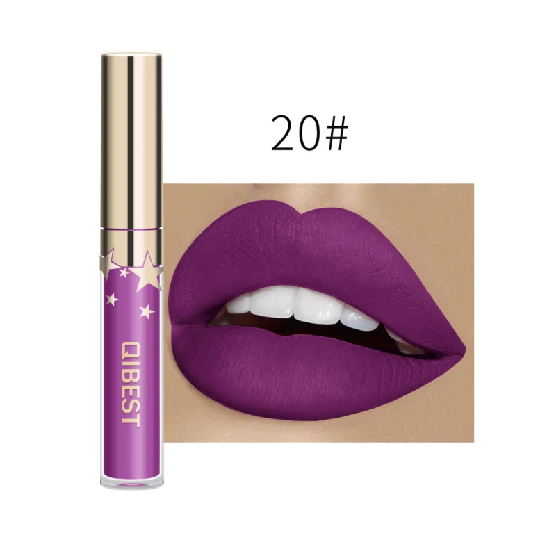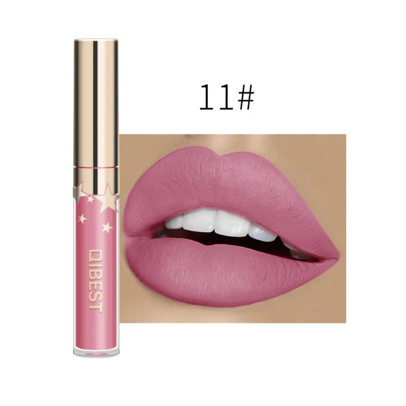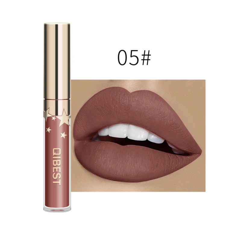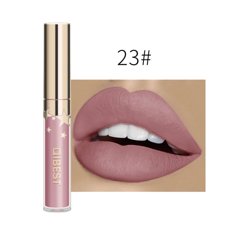 QIBEST матовый блеск для губ с антипригарным покрытием стойкий блеск для губ не выцветает жидкая губная помада